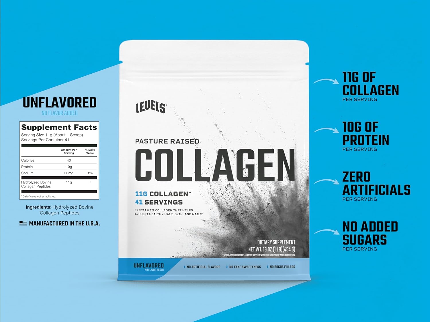Levels Collagen: Each Scoop Of Levels Unflavored Collagen Peptides Contains 11G Of Types 1 & 3 Collagen And Is Loaded With Essential Amino Acids