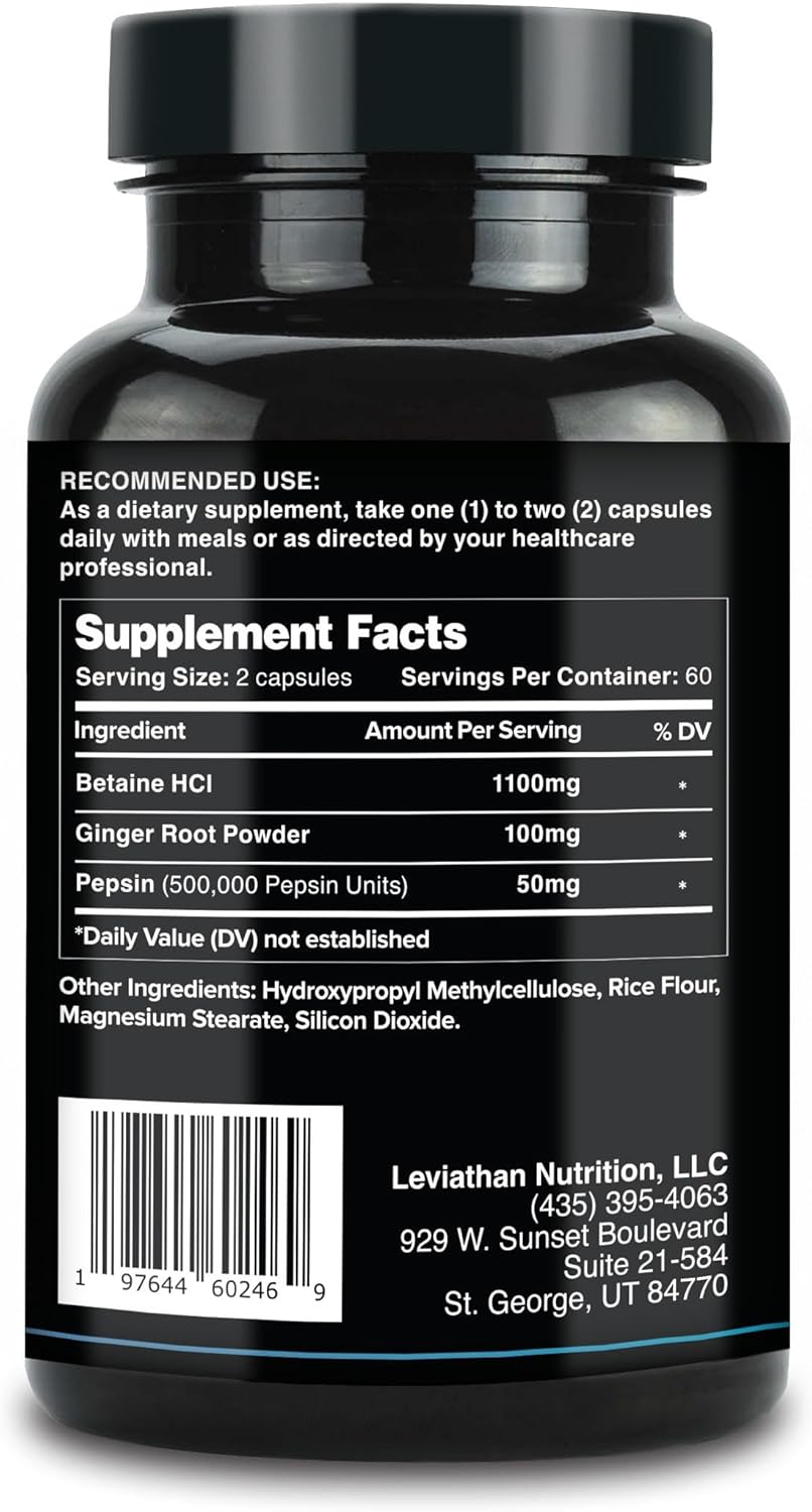 Leviathan Betaine Hcl With Pepsin & Ginger - Digestive Enzymes Supplement For Digestion Aid & Support, Stomach Acid & Nutrient Absorption