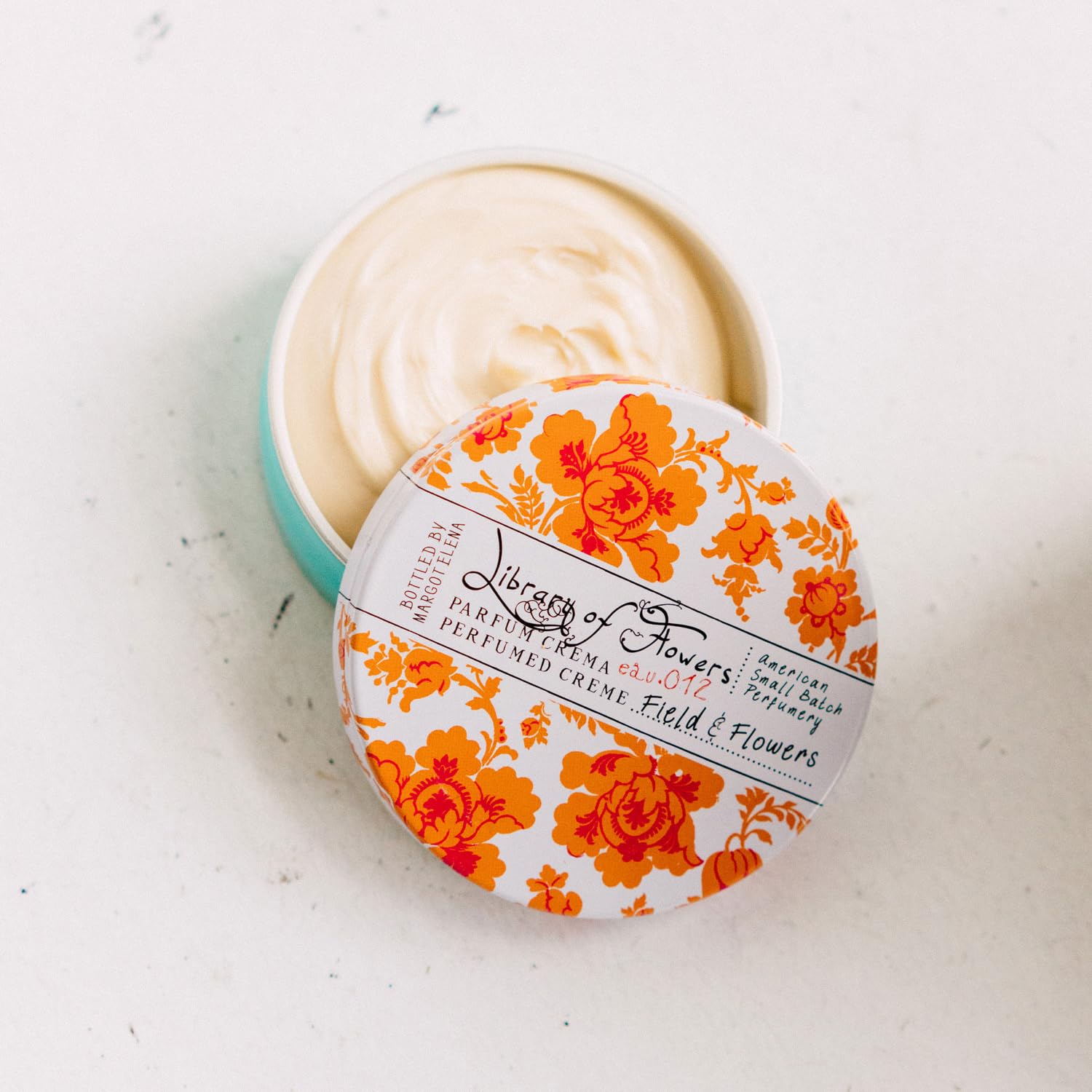 About this item TRIPLE-SCENTED PERFUME CREAM: Library of Flowers Parfum Crema is an extra-rich creme based product and a triple-scented perfume alternative to wear in place of traditional perfume fragrances. LONG LASTING PERFUME SCENT: This womenâs perfume is designed to capture fragrance and slowly release when applied for long lasting perfume delivery. This Field and Flowers Parfum Crema features Apricot, Honeyed Blossom, and Wildflowers. BEAUTIFUL CRAFTSMANSHIP: Create a memorable journey through sight and scent with this scented lotion for women. The beautiful designed tin captures the artisanal craftsmanship that comes with Library of Flowers products. WEAR ALONE AS PERFUME: With three times the fragrance of Library of Flowers Eau de Parfums, a dab (or two!) of Parfum Crema can be worn alone as perfume. Customize your fragrance level: one dollop will do, but two or three will delight. MAKING BEAUTY MORE BEAUTIFUL: Margot Elena has spent over 20 years lovingly developing brand worlds for a delightful, everyday escape. From intricate packaging to luxurious formulas and exquisite fragrances, each element is carefully crafted. See more product details,TRIPLE-SCENTED PERFUME CREAM: Library of Flowers Parfum Crema is an extra-rich creme based product and a triple-scented perfume alternative to wear in place of traditional perfume fragrances,LONG LASTING PERFUME SCENT: This womenâs perfume is designed to capture fragrance and slowly release when applied for long lasting perfume delivery. This Field and Flowers Parfum Crema features Apricot, Honeyed Blossom, and Wildflowers,BEAUTIFUL CRAFTSMANSHIP: Create a memorable journey through sight and scent with this scented lotion for women. The beautiful designed tin captures the artisanal craftsmanship that comes with Library of Flowers products,WEAR ALONE AS PERFUME: With three times the fragrance of Library of Flowers Eau de Parfums, a dab (or two!) of Parfum Crema can be worn alone as perfume. Customize your fragrance level: one dollop will do, but two or three will delight,MAKING BEAUTY MORE BEAUTIFUL: Margot Elena has spent over 20 years lovingly developing brand worlds for a delightful, everyday escape. From intricate packaging to luxurious formulas and exquisite fragrances, each element is carefully crafted