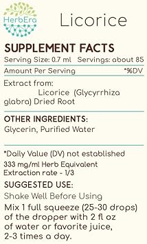 _________________________________________________________________________ ____________________________________________________________ Liquid Herbal Extract. At Herbera our extracts are formulated for premium quality and time-tested dependability. Potent 1:3 herb to solvent ratios guarantee that all the qualities of the herb are fully protected, this is achieved through hyper raw-extraction and technology. Through paramount research we take premium grade herbs from global suppliers and use unparalleled menstruum ratios to extract high bio-active compounds that exceed expectations. We prioritize facilities, clean areas around the world and modern means of production each step of the way. With you in mind we remain at the forefront of health science. Suggested Use: Adults take 30-50 drops of extract in a small amount of water or choice beverage 2-4 times daily between meals. Other Ingredients: Glycerin Distilled Water. Warnings: Shake well before using. Not to be used during pregnancy or lactation. If you have a medical condition or take medications, please consult with your doctor before use. Keep out of reach of children. Use only as directed on label. Safety-sealed for your protection. _________________________________________________________________________ ____________________________________________________________________ Herbera ®,100% NATURAL PRODUCT: No artificial colors or flavors,MADE AND TESTED IN THE USA: We made our products in Colorado, famous for its pure nature,Verified herb identity, confirmed highest quality of raw herb and the extract,Best natural sources of herbs and materials: Every vendor is carefully picked to meet our high standards