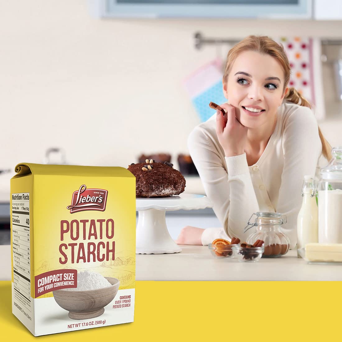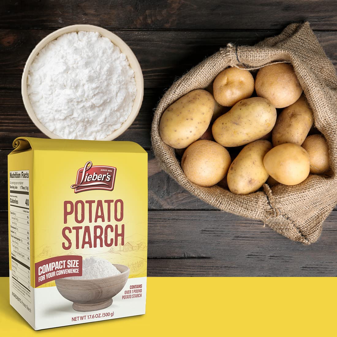 About this item A Must In Your Kitchen: Whether you’re looking for a way of cooking healthier recipes for your family without compromising on delicious taste, or you’re simply on a gluten-free diet which requires alternatives, Lieber’s potato powder for baking is the perfect choice! Finest Quality Starch: This potato starch is made with premium quality, 100% safe ingredients, using no GMOs, nasty preservatives, artificial flavors or other potentially dangerous additives! Incredibly Versatile: This gluten free starch has wide applications in your kitchen, being used as a thickener for a variety of soups, sauces, stews, and giving your dishes a perfect texture! Convenient Pack: Lieber’s organic potato starch comes in a compact and affordable packaging, containing 17.6oz product, enough for 42 servings. An ideal choice for your long-term needs, this starch is a must in your pantry! Gluten Free Baking: Potato starch is an excellent replacement for corn starch, as it enjoys a higher resistance to baking temperatures! Perfect for preparing your favorite gluten-free recipes! › See more product details,A Must In Your Kitchen: Whether you’re looking for a way of cooking healthier recipes for your family without compromising on delicious taste, or you’re simply on a gluten-free diet which requires alternatives, Lieber’s potato powder for baking is the perfect choice!,Finest Quality Starch: This potato starch is made with premium quality, 100% safe ingredients, using no GMOs, nasty preservatives, artificial flavors or other potentially dangerous additives!,Incredibly Versatile: This gluten free starch has wide applications in your kitchen, being used as a thickener for a variety of soups, sauces, stews, and giving your dishes a perfect texture!,Convenient Pack: Lieber’s organic potato starch comes in a compact and affordable packaging, containing 17.6oz product, enough for 42 servings. An ideal choice for your long-term needs, this starch is a must in your pantry!,Gluten Free Baking: Potato starch is an excellent replacement for corn starch, as it enjoys a higher resistance to baking temperatures! Perfect for preparing your favorite gluten-free recipes!