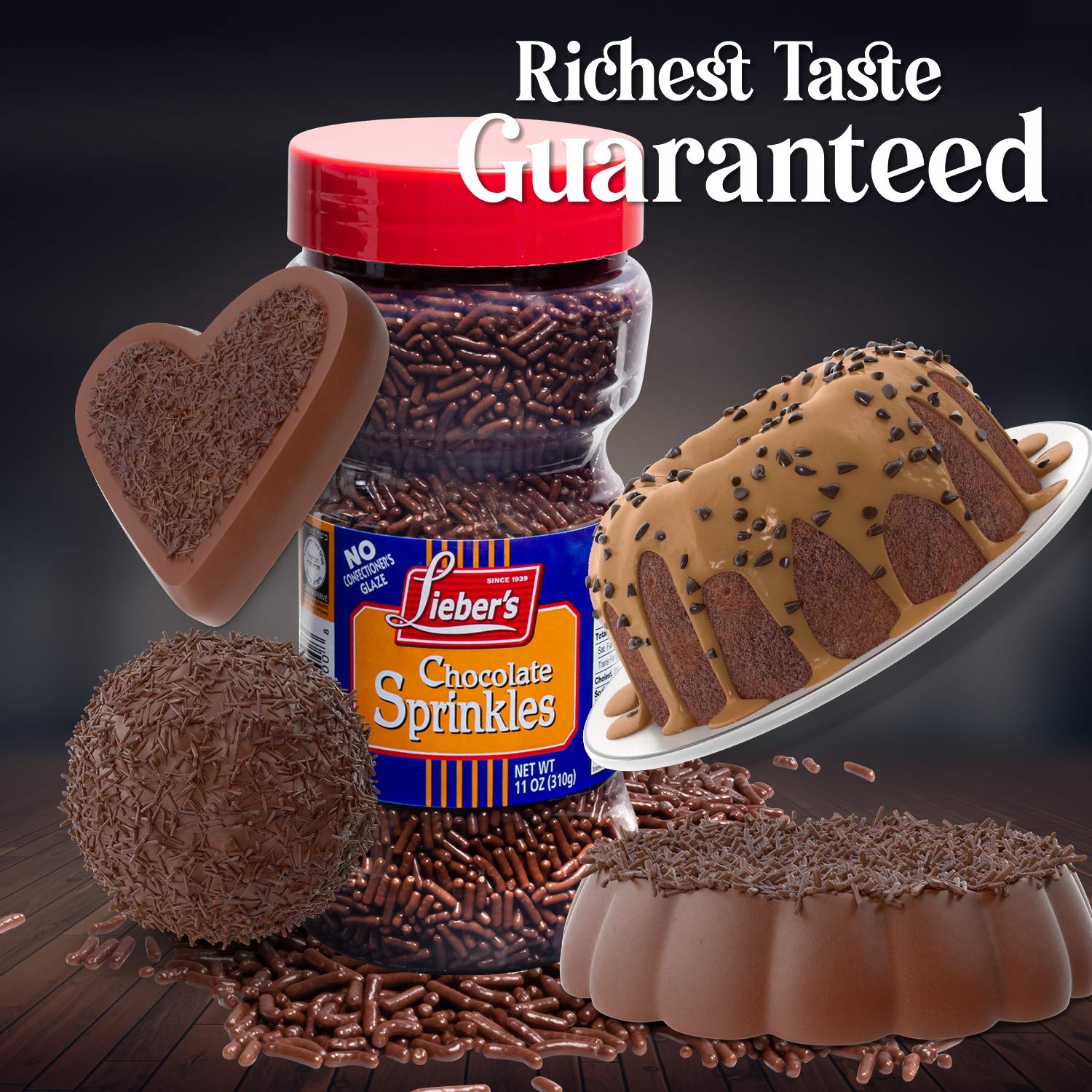 Lieber'S Chocolate Sprinkles | Tasty Chocolate Jimmies Are A Great Dessert Topping For Cooking, Baking & Decorating Ice Cream | 11 Ounces