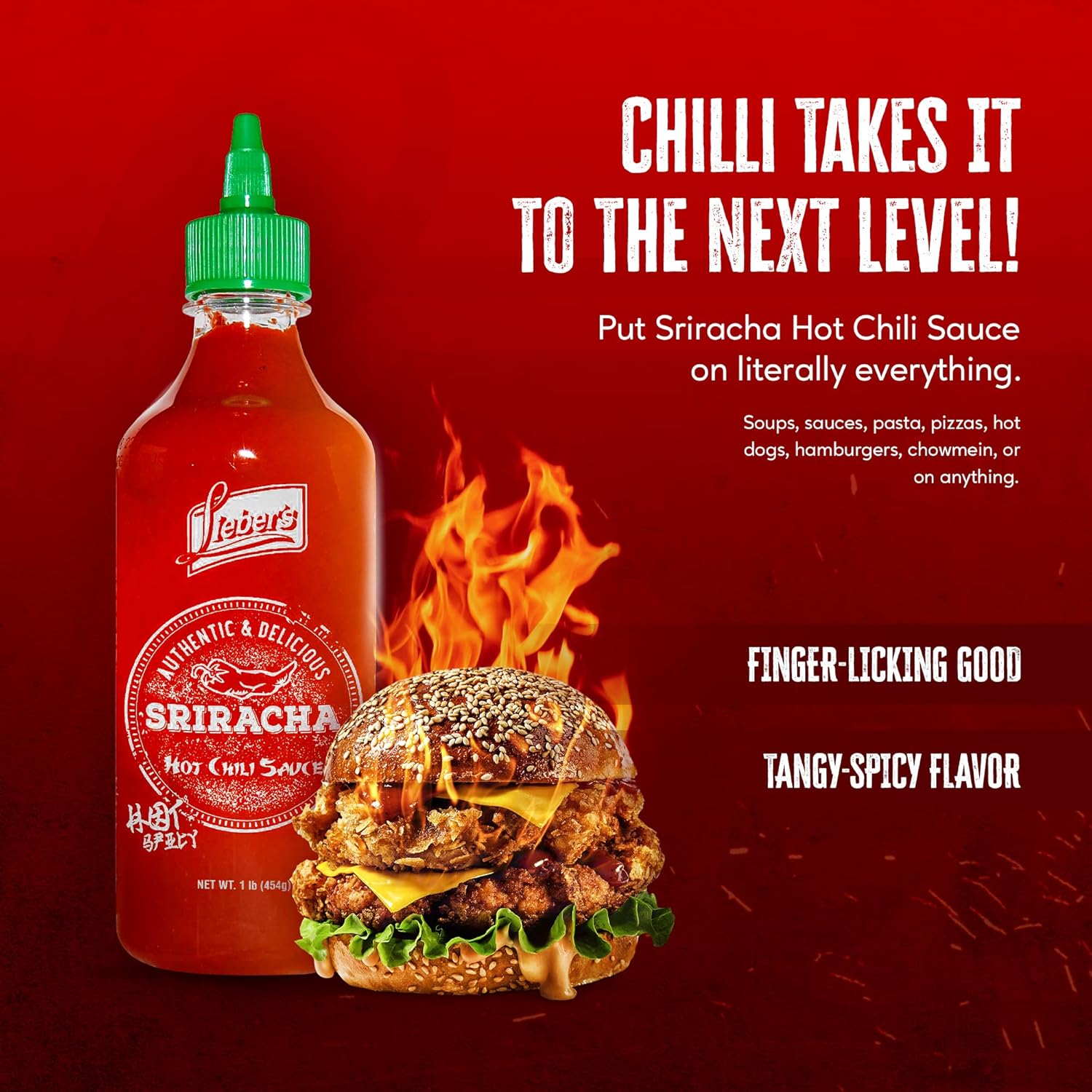 Lieber'S Sriracha Hot Chili Sauce, Authentic And Delicious, Non-Gmo, No Msg, Gluten-Free, Cholesterol-Free, And Vegan, Net Wt. 1 Lb (454G)