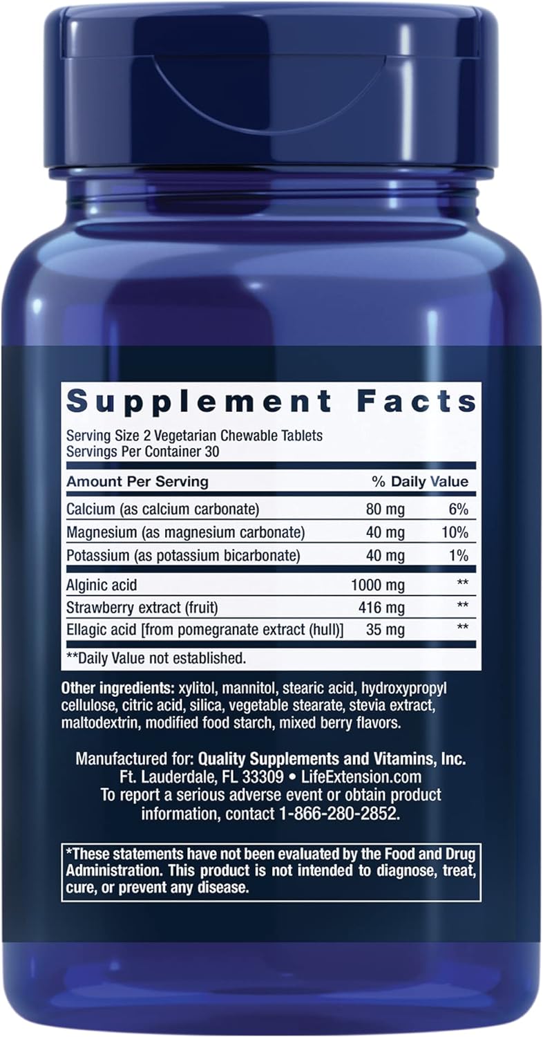 Life Extension Esophageal Guardian, Alginic Acid, Potassium Bicarbonate, Get Long-Lasting Relief From Gastric Distress, Vegetarian, Non-Gmo, Gluten-Free, 60 Vegetarian Chewable Tablets