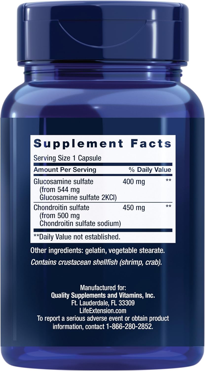 Life Extension Glucosamine/Chondroitin Capsules For Healthy Joints And Cartilage, Non-Gmo, Gluten-Free, 100 Capsules