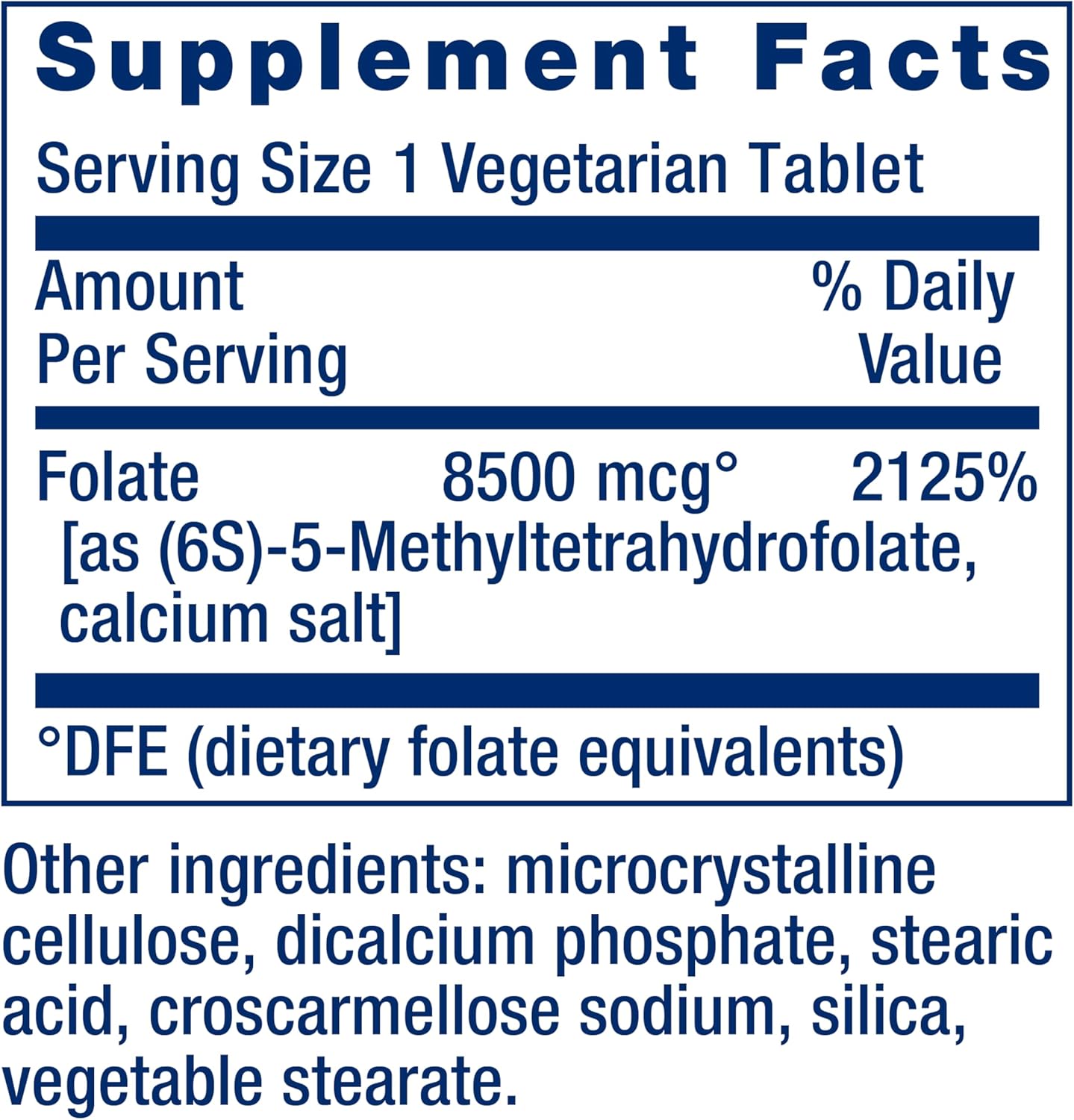 Life Extension High Potency Optimized Folate – L-Methylfolate – Folic Acid, 8500 Mcg Dfe – Heart & Brain Support, Healthy Homocysteine Levels – Gluten-Free, Non-Gmo, Vegetarian – 30 Tablets