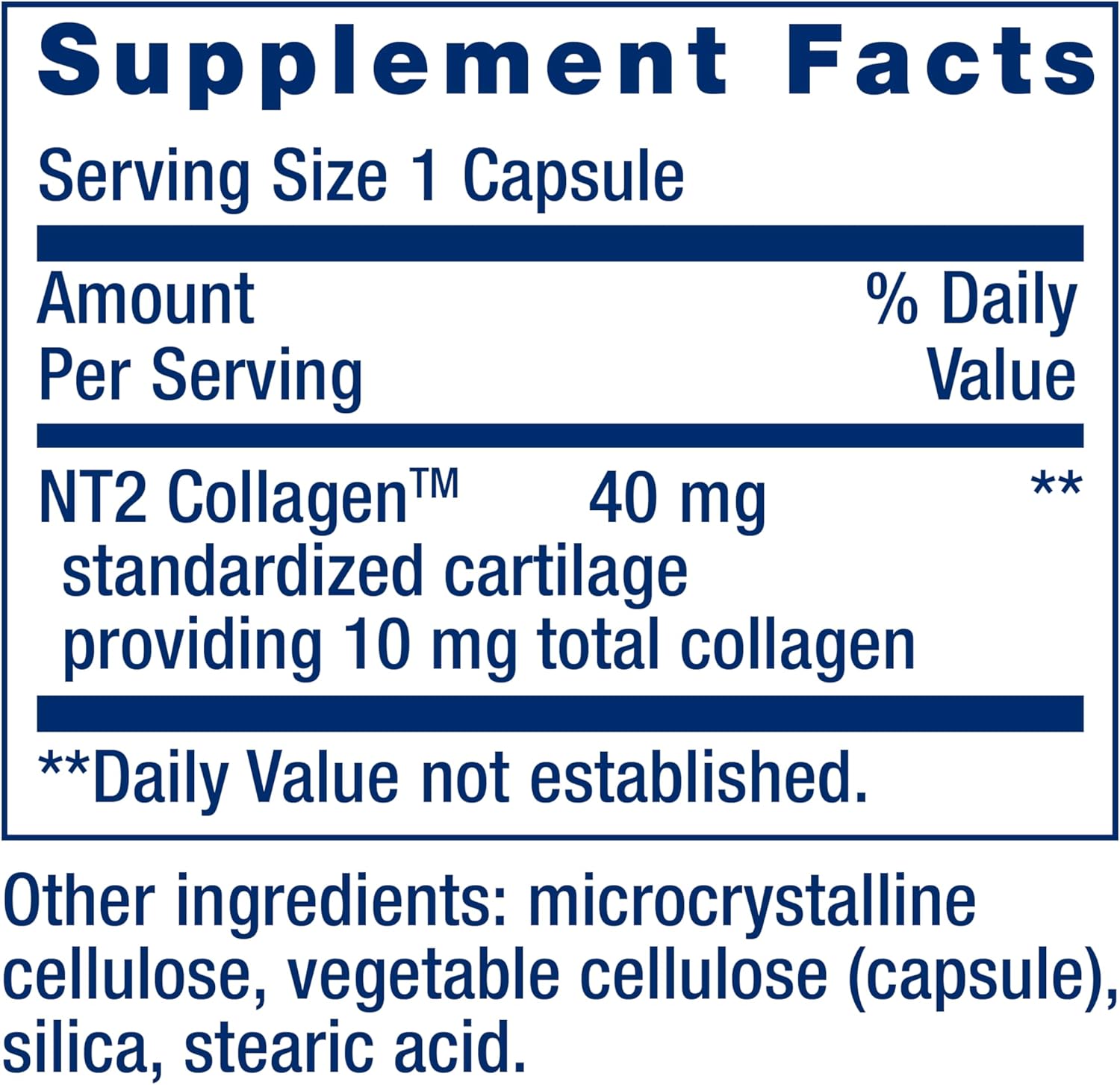 Nt2 Collagen™ Is A Novel Formula For Joint Health And Healthy, Comfortable Joint Function. It Contains An Innovatively Processed Type Of Undenatured Type Ii Collagen That Supports Joint Comfort, Flexibility And Range Of Motion. Nt2 Collagen™ Contains 60 Small Capsules, Enough For A Two-Month Supply. This Formula Is Made With Non-Gmo Ingredients And Is Designed As A Once-Daily Supplement