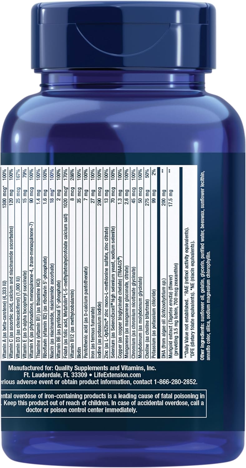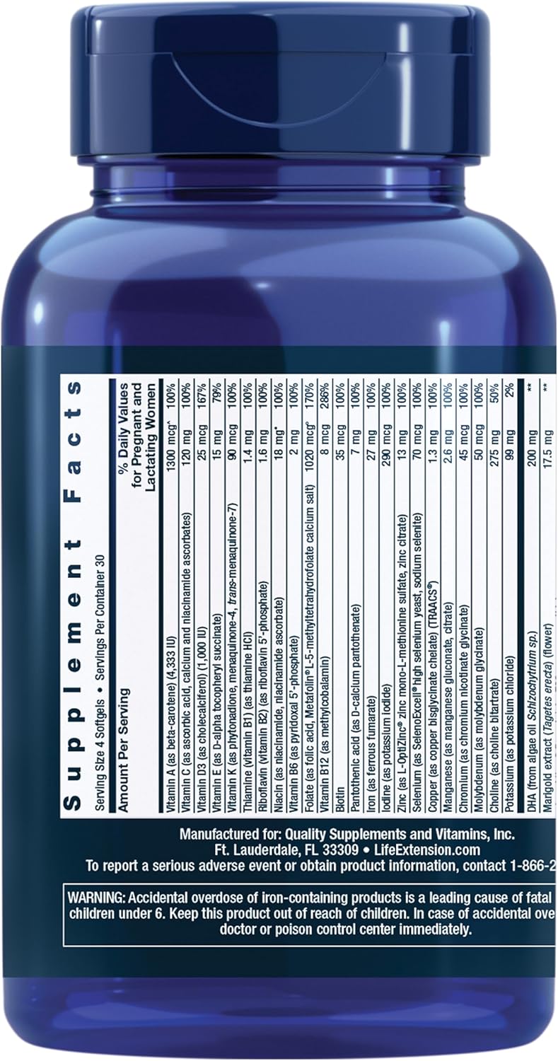 Life Extension Prenatal Advantage Supplement – Comprehensive Prenatal Vitamin For Pregnant Women - Complete Multivitamin For Healthy Brain With Dha - Non-Gmo, Gluten-Free -120 Softgels