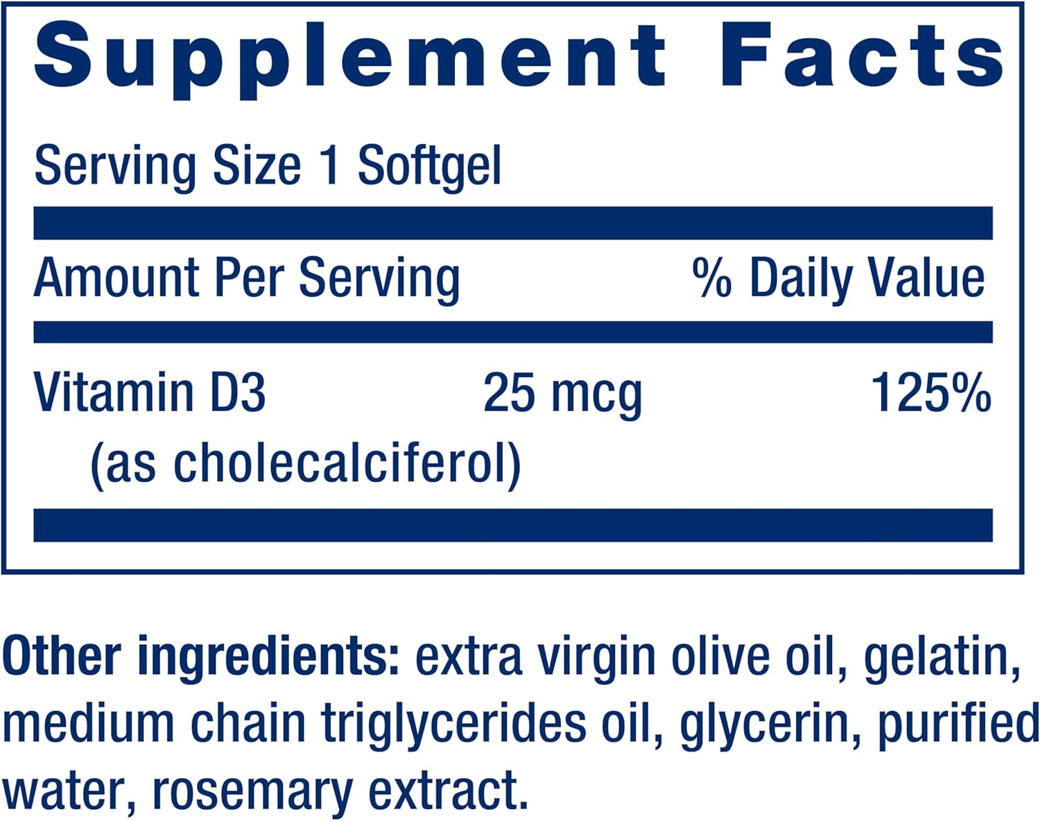 Vitamin D3 can be synthesized by humans in the skin upon exposure to ultraviolet-B (UVB) radiation from sunlight. But, due to the winter season, weather conditions, and sun block, the body’s ability to produce optimal vitamin D levels may be inhibited. These factors point to the value of taking a daily vitamin D supplement,Whole-body health all-star – Your body uses vitamin D to keep you healthy and thriving. This supplement delivers 25 mcg of cholecalciferol (vitamin D3), a form that’s more efficient at maintaining healthy D levels than other vitamin D supplements,Immune system and heart health support – Vitamin D3 helps your body combat everyday and seasonal immune challenges, encouraging a robust immune response. Vitamin D benefits heart health, and endothelial health,Bone & brain health – Vitamin D helps get calcium into your bones, helping them maintain their strength and rigidity. Vitamin D3 is good for your brain too: healthy D3 levels have been shown to help maintain cognitive abilities and overall brain health!,Ingredients matter – We use the finest raw ingredients with the quality and purity you deserve. The majority of our products are non-GMO, gluten-free and manufactured in the USA—and a Certificate of Analysis is available for every one,Live your healthiest life – We believe the answers to a healthier life are in reach, and that scientific research is the key to getting there. That’s why so many of our formulas feature specific ingredients and amounts based on scientific studies