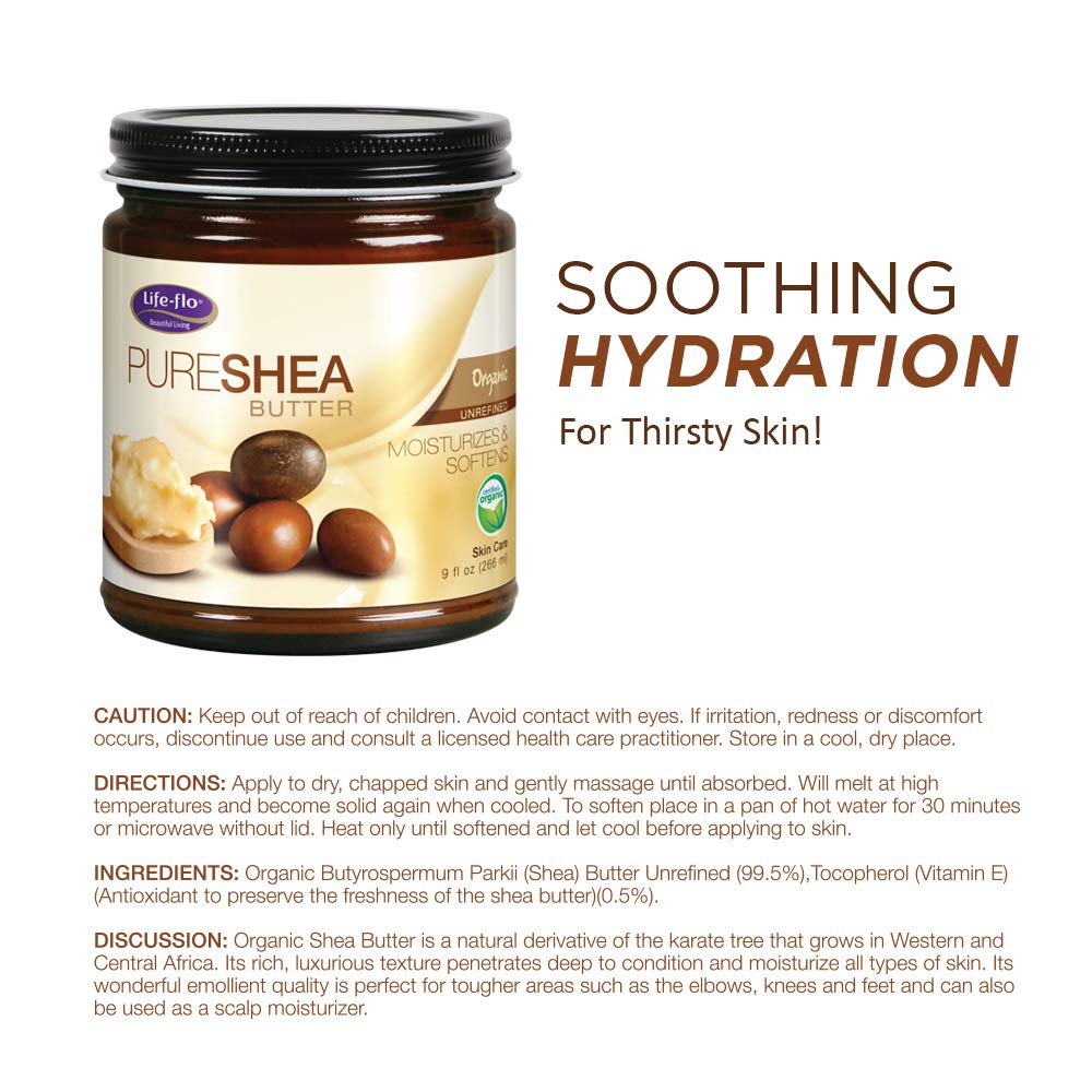 Life-Flo Pure Organic Shea Butter, Unrefined | Moisturizes, Smooths & Conditions Skin, Hair & Scalp | No Parabens | 9Oz