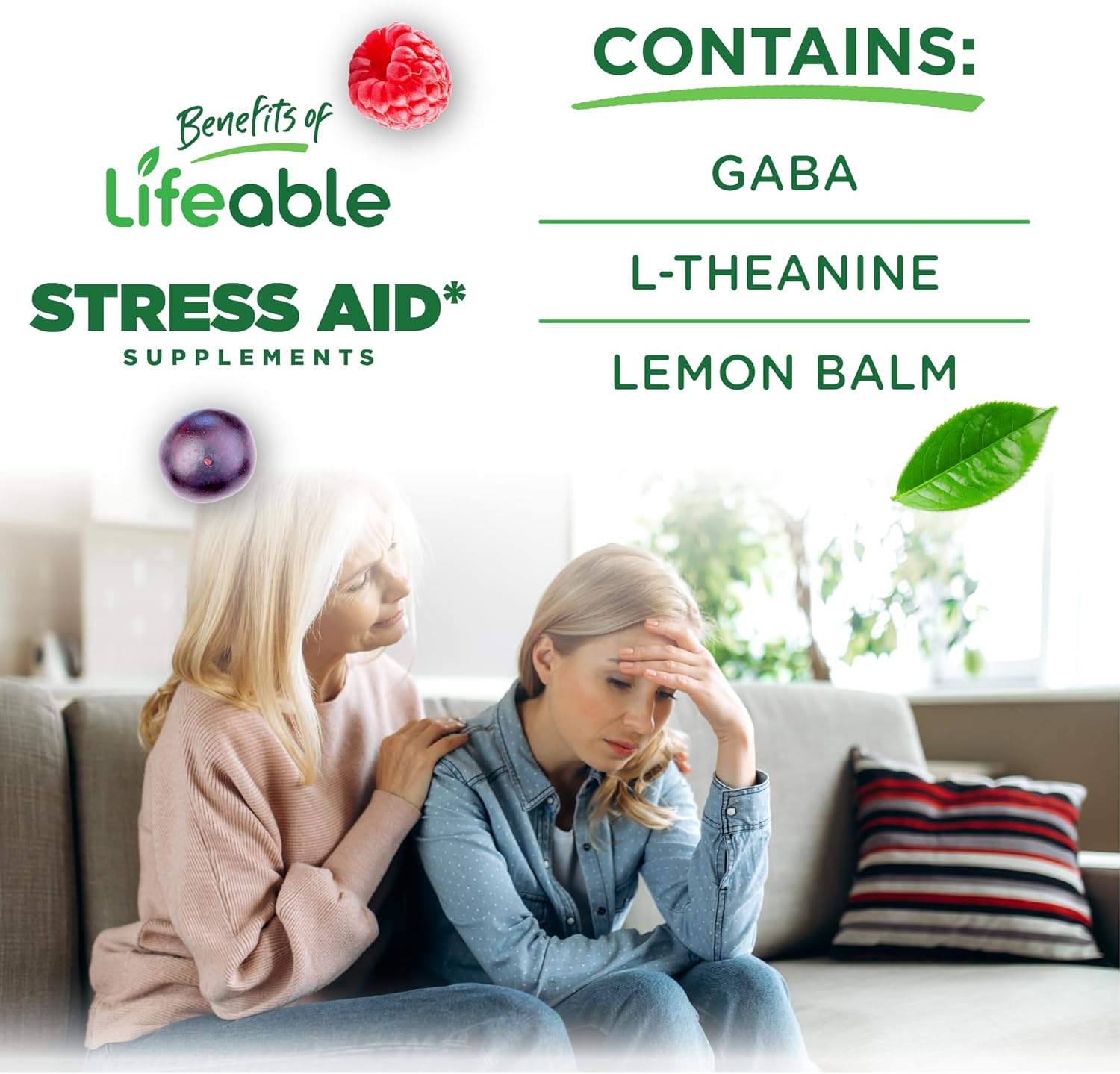 Lifeable Stress Aid Gummies For Teens | With Lemon Balm, Gaba And L Theanine Supplements | Vegan Non Gmo Mood Support Supplement | Great Tasing Stress Vitamins | L-Theanine For Teen | 90 Gummies