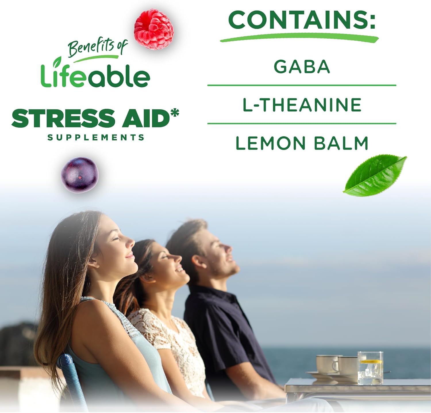 Lifeable Stress Aid Gummies | With Lemon Balm, Gaba And L Theanine Supplements | Vegan Non Gmo Mood Support Supplement | Great Tasing Stress Vitamins | L-Theanine For Women And Men | 90 Gummies