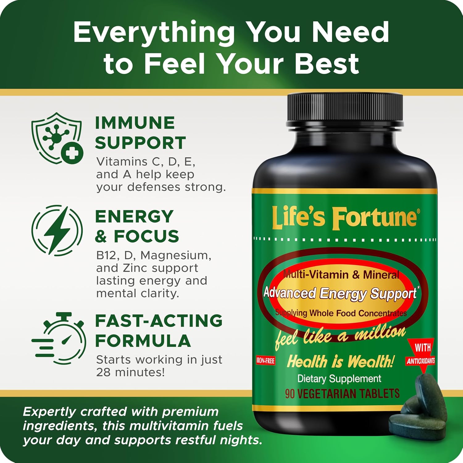 Immune System Support: The Immune system is the body’s defense against invasion. In our modern lifestyles, the nutritional content of our food supply is often lacking the we need to stay strong. Life’s Fortune’s well-balanced multivitamin supplement is a valuable ally in filling in all the gaps in your diet to ensure your bodily processes are met with exceptional vital nutrient elements at all times