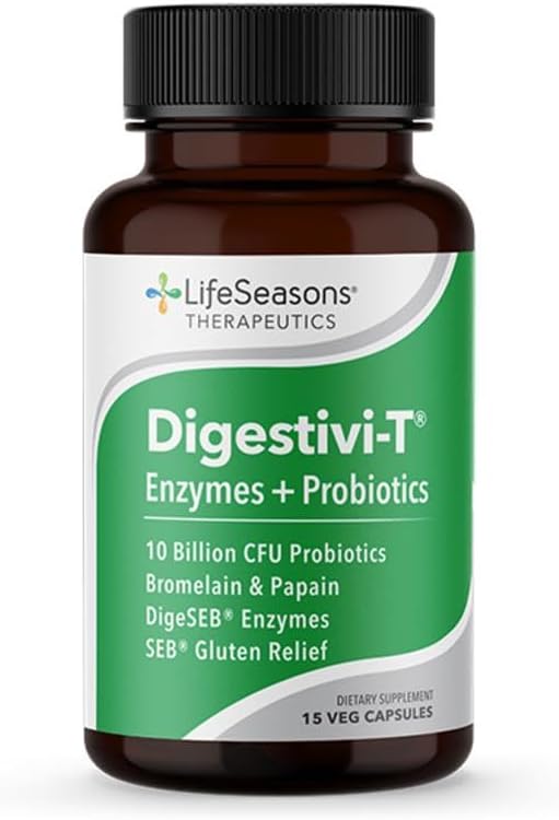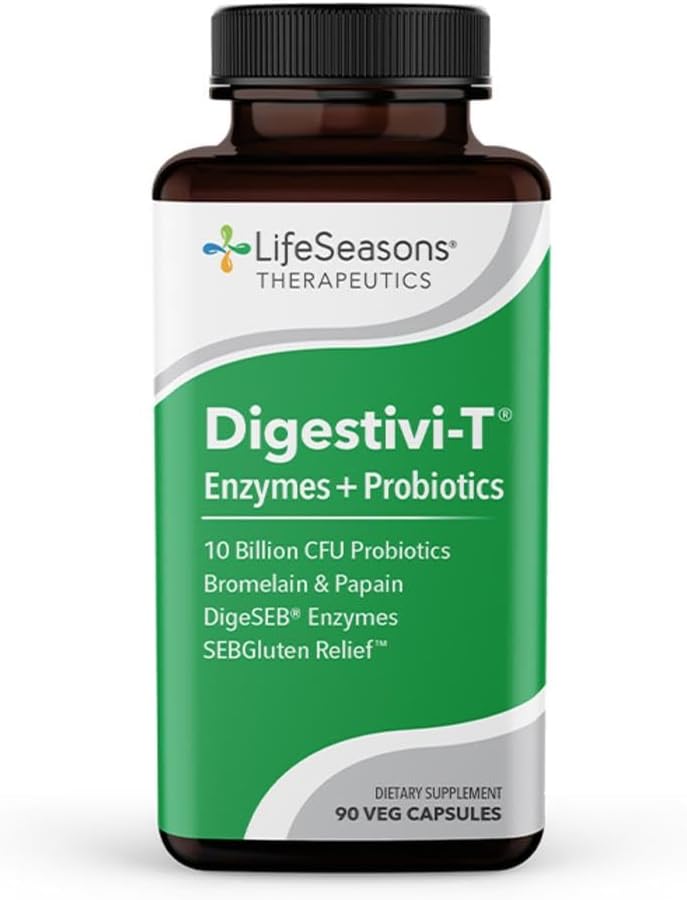 DESCRIPTION : LifeSeasons - Digestivi-T - Digestive Enzymes & Probiotic Supplement - Supports Gut Microbiome & Healthy Immune Function - Relieves Bloating & Digestion Discomfort - Beneficial Bacteria - 90 Capsules90 Count (Pack of 1)