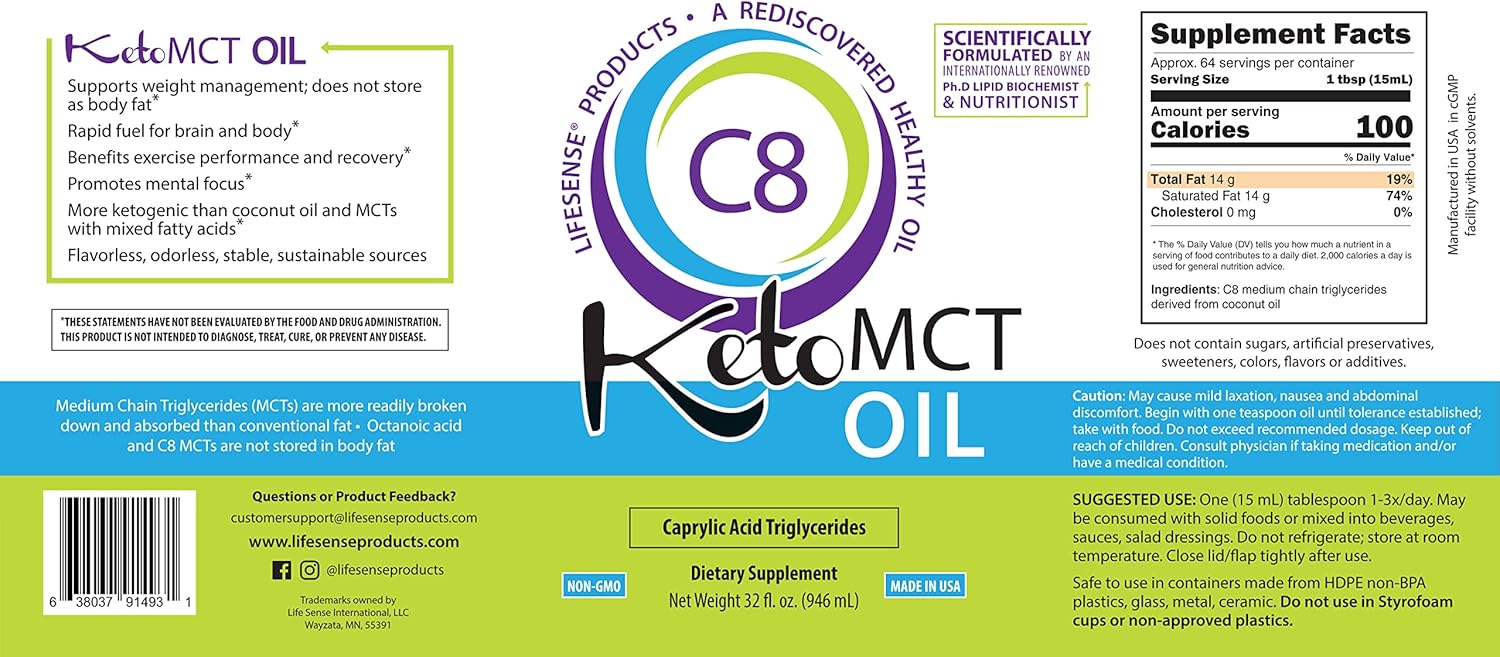 Lifesense Mct Oil Has Proven To Increase Betahydroxybutyrate (Bhb) As Per The 2022 Clinical Trial.* This Important Clinical Trial Was Published In A Formal, Peer-Reviewed Scientific Journal, And Conducted By Academic Experts From Canada. Specifically, The Authors Found That Consuming A Single Dose Of 15 Ml Of Our C8 Mct Oil Statistically Significantly Raised Bhb From Fasting Levels, At 60 Min (2X Increase) And 120 Min (1.6 X Increase) Post Ingestion, In Healthy Subjects Consuming High Levels Of Carbohydrates (Greater Increases Expected On A Low Carb āKetoā Background Diet). This Increase In Bhb Indicates Our C8 Mct Oil Is Efficiently Converted To Bhb; And The Bhb In Turn Provides Benefits Such As: Energy For Brain, Muscle, And Other Organs; And Numerous Other Physiological Benefits. Please Note: It Cannot Be Assumed That Other Mct Oils Sold Commercially Will Increase Bhb (As Ours Did), So Thank You For Buying Our Clinically Proven Products, The Only Brand Developed By A Renowned Lipid Biochemist And Published Nutrition Expert. The Lifesense Difference The Most Potent Mct Oil Many Companies Give The Impression Their Product Is Cheaper, By Reducing The Serving Size, Or Reducing The Amount Of Actives Per Serving Size. We Encourage Customers To Do Some Research Before Purchasing. Only Sustainable Sources To Protect Wild Habitats ā We Source For Coconut Oil. Mct Compatible Bottles And Other Components Highest Potency, Super-High Quality C8 Mct Oil C8 Mct Oil, Medium Chain Triglyceride Was Shown In Clinical Trials To Be Most Potent With Respect To Increases In Blood Ketone Bodies (Kbs) Triple Distillation Process With Only Water, Heat And Pressure Without Chemicals And Solvents Super-High Quality, Domestically Manufactured, Potently Ketogenic Pure C8 Mct Oil; No Fruity Flavor Of Inferior Mct Oils No Artificial Preservatives, Colors Or Additives By Renowned Ph.D Lipid Biochemist & Nutritionist 30+ Yearsā Of Technical Know-How Of Lipids And Nutrition To Help Customers Get The Most From The Products Serious On Science: Our Communicated Product Benefits Are Substantiated In Peer-Reviewed Scientific Literature Frequently Featured On Podcasts And Radio Shows Unlike Many Other Products On The Market, All Our Products Have Been Tested For Safety And Efficacy In Humans Preferred Brand Of Doctors Lifesense /Ketomct Is The Only Brand To Be Chosen To Be Clinically Tested By A Major University Rapid Fuel For Your Brain And Body Exceptional Quality And Great Product Benefits The Body Will Use C8 Mct Oil For Instant Energy Or Convert To Ketone Bodies For Later Use Helps Mental Clarity And Focus Helps Sustain Steady High Energy Supports Weight Management Helps With Post-Workout Recovery An Expert Q&A Guide To Purchasing C8 Mct Oils A Re There Any 100% C8 Mct Oil On The Market No, ItāS Not Technically Accurate To State That A Product Is 100% C8 (C8 Mcts), Since There Is Always Some Amounts Of C10 Mct Oil. The Amounts Vary Depending On The Lot Currently For Sale, So Even For Lots That Contain Less Than 1% C10, Customers Deserve To Know That There Is A Small Amount Of C10 Since In Math 99% Plus Does Not Equal 100%. It Is Not Logical Biologically And Analytically, To Choose One Product Because It Claims 100% Over Another Product That Claims 99%, 98%, Or 97%. Some Sellers Round Off To Market Their Products As More Superior, So This Leaves Consumers To Do Their Own Due Diligence To Make An Educated Decision Regarding Their Purchase. Most Important: Honesty, Integrity, Trust And Reputation Of The Company As Well As Super High Quality Of The Product. What Materials Are Not Safe To Use With Mcts M Ct Oils, Particularly C8 Mct Oils, Have Natural Chemical Properties (Emulsifying, Penetrating, Surfactant, Polar) That Dissolve Softer Plastics. Many Commercial Mct Oil Products Are Sold In The Wrong Plastics And This Really Concerns Us. O Rdinary Plunger Style Pumps Or Non-Tested Plastics Are Not To Be Used With Mcts. Lifesense Only Uses Tested And Approved Materials. Why Do You Not Offer Lifesense C8 Ketomct Oil In Capsules Like Other Companies M Ct Capsules Typically Provide About 1 Gram Of Oil, If They Are Large Soft-Gels. The Optimum Daily Amount Of Mct Oil For 70 Kg Adults Is 16-32 Grams (1-2 Tbsp.). So, A Person Would Need To Swallow About 16 Big Capsules To Get The Amount Of C8 Mct Recommended For Optimum Benefit. The Reason 1 Tablespoon Is Chosen Is Because This Amount Of Mct Yields A Substantial And Rapid Increase In Plasma Ketone Bodies. This Amount Is Published In Peer Reviewed Journals To Be Both Safe And Efficacious. When Comparing Products, Consumers Should Always Compare Equivalent Amounts Of Mct Oil Per Serving. Is It Possible For Mct Oil To Be Organic Y Es, But Not Only The Source, But The Process Of Manufacturing Mct Oils Has To Be Organic. āFrom Organic Coconutsā Does Not Make The Final Mct Product Organic. Currently, Organic Mct Oils On The Market Contain C8, C10 And C12 (Lauric Acid, Which Biologically Does Not Act Like A Medium Chain Fatty Acid And Gets Stores In Fat Storage In The Body). Is Mct Oil Natural T He Term āNaturalā Has No Official Meaning From Usa Regulatory Agencies, And Thus Has No Practical Meaning When Used On A Product. But Since A True C8 Mct Is Made By Splitting The Original Materials To Yield C8 And Glycerin, And These Components Are Then Re-Combined, True C8 Mct Oil Should Not Be Labeled Natural. Why Is C8 Mct Oil The Most Expensive Amongst Mct Oils I T Is The Most Expensive, Because Of The Sourcing And Processing Involved. If You See C8 Mct Oil With A Low Cost, Question Its Quality And Determine If ItāS At Least 97% C8 Mct Oil. ItāS A Consumable Product And You Deserve The Best. Coconut Oil Contains Only About 6% C8. Some Companies Claim C8-Enriched Without Stating The Amount Of C8. Are āPharma Gradeā/āMedical Gradeā Mcts Better Than Products Without This Designation T Here Are Many āPharma Gradeā Mcts Marketed, And It Is Challenging To Know What Is Really Meant. 