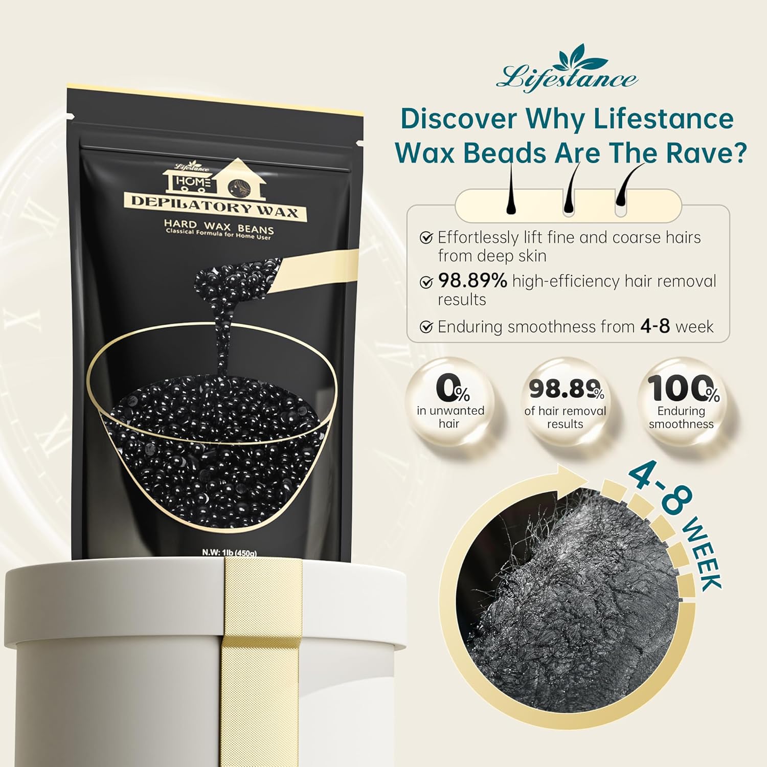 About this item UNSCENTED AND SKIN-FRIENDLY PEARL WHITE WAX: Discover the gentle touch of Lifestance 1LB Pearl White Wax Beads, unscented and crafted for sensitive skin, passing the HRIPT sensitivity test. Infused with coconut oil and pearl powder essence, our formula ensures a gentle yet effective waxing experience, minimizing irritation and redness. Ideal for full-body use, enjoy a pain-less, soothing waxing session with these fragrance-less beads. LOW-TEMPERATURE MELTING FOR COMFORT: Immerse yourself in the luxurious experience of Lifestance spa-quality waxing with our hard wax, melting at a lower temperature for a more comfortable application. Suitable for both men and women, Lifestance Pearl White wax beads a soothing waxing session for everyone. Perfect for a relaxing, safe, and luxurious hair removal session at home, especially suitable for Face Eyebrow Brazilian and Bikini waxing. EFFECTIVE HAIR REMOVAL FOR VARIOUS BODY AREAS: Lifestance wax is meticulously designed to effectively remove coarse and stubborn hair from various body areas. From eyebrow, and face to Brazilian waxing, our formula ensures a smooth, long-lasting result. Ideal for those seeking professional-grade results, our wax melts provide efficient hair removal with minimal hassle. SALON-QUALITY EXPERIENCE AT HOME: Bring the salon experience to your doorstep with Lifestance Pearl White Wax Beads, a top choice among waxing enthusiasts. Perfect for DIY enthusiasts and home waxers, our beads offer salon-quality results without the high cost and inconvenience of salon visits. Provide yourself with a professional waxing experience, making them an excellent choice for achieving high-quality results. COST-EFFECTIVE WAXING SOLUTION: Save on salon visits with Lifestance 1LB pack of Pearl White wax beads, offering multiple high-quality waxing sessions at an affordable price. Ideal for regular waxers seeking a cost-effective solution for maintaining smooth skin, our economical pack is suitable for those who prioritize both quality and value in their beauty routine. SUITABLE FOR ALL SKILL LEVELS: Whether you're a beginner or an experienced waxer, Lifestance Pearl White Wax Beads offers an easy and efficient waxing process. Catering to all skill levels, our beads ensure a satisfactory and hassle-less experience for every user. Perfect for those new to waxing and seasoned professionals alike. › See more product details,UNSCENTED AND SKIN-FRIENDLY PEARL WHITE WAX: Discover the gentle touch of Lifestance 1LB Pearl White Wax Beads, unscented and crafted for sensitive skin, passing the HRIPT sensitivity test. Infused with coconut oil and pearl powder essence, our formula ensures a gentle yet effective waxing experience, minimizing irritation and redness. Ideal for full-body use, enjoy a pain-less, soothing waxing session with these fragrance-less beads,LOW-TEMPERATURE MELTING FOR COMFORT: Immerse yourself in the luxurious experience of Lifestance spa-quality waxing with our hard wax, melting at a lower temperature for a more comfortable application. Suitable for both men and women, Lifestance Pearl White wax beads a soothing waxing session for everyone. Perfect for a relaxing, safe, and luxurious hair removal session at home, especially suitable for Face Eyebrow Brazilian and Bikini waxing,EFFECTIVE HAIR REMOVAL FOR VARIOUS BODY AREAS: Lifestance wax is meticulously designed to effectively remove coarse and stubborn hair from various body areas. From eyebrow, and face to Brazilian waxing, our formula ensures a smooth, long-lasting result. Ideal for those seeking professional-grade results, our wax melts provide efficient hair removal with minimal hassle,SALON-QUALITY EXPERIENCE AT HOME: Bring the salon experience to your doorstep with Lifestance Pearl White Wax Beads, a top choice among waxing enthusiasts. Perfect for DIY enthusiasts and home waxers, our beads offer salon-quality results without the high cost and inconvenience of salon visits. Provide yourself with a professional waxing experience, making them an excellent choice for achieving high-quality results,COST-EFFECTIVE WAXING SOLUTION: Save on salon visits with Lifestance 1LB pack of Pearl White wax beads, offering multiple high-quality waxing sessions at an affordable price. Ideal for regular waxers seeking a cost-effective solution for maintaining smooth skin, our economical pack is suitable for those who prioritize both quality and value in their beauty routine,SUITABLE FOR ALL SKILL LEVELS: Whether you're a beginner or an experienced waxer, Lifestance Pearl White Wax Beads offers an easy and efficient waxing process. Catering to all skill levels, our beads ensure a satisfactory and hassle-less experience for every user. Perfect for those new to waxing and seasoned professionals alike