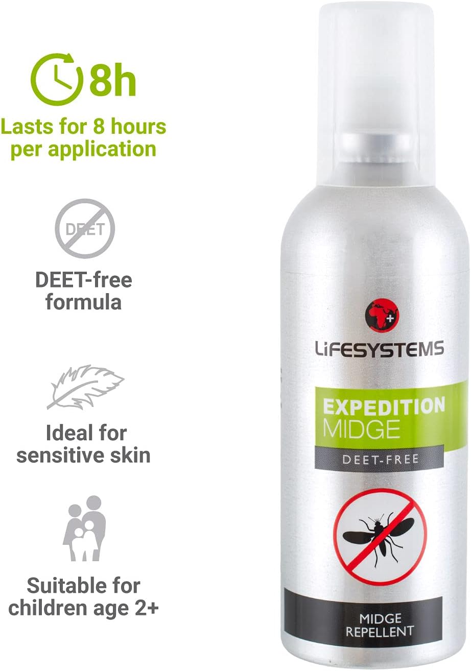 Lifesystems Deet Free Midge & Insect Repellent, Long Lasting For Sensitive Skin | Repels Midges, Mosquitoes, Ticks, Silver