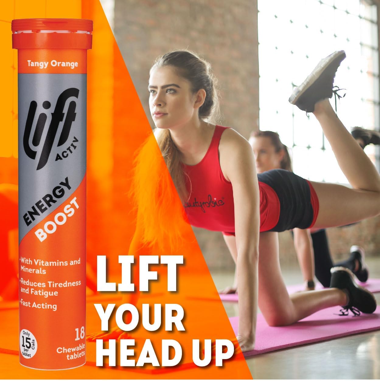 Lift Activ Energy Boosting Glucose Chewable Energy Tablets, Contains Added Multivitamins And Minerals, Juicy Raspberry, 1 Pack Of 18-Tablet Tubes