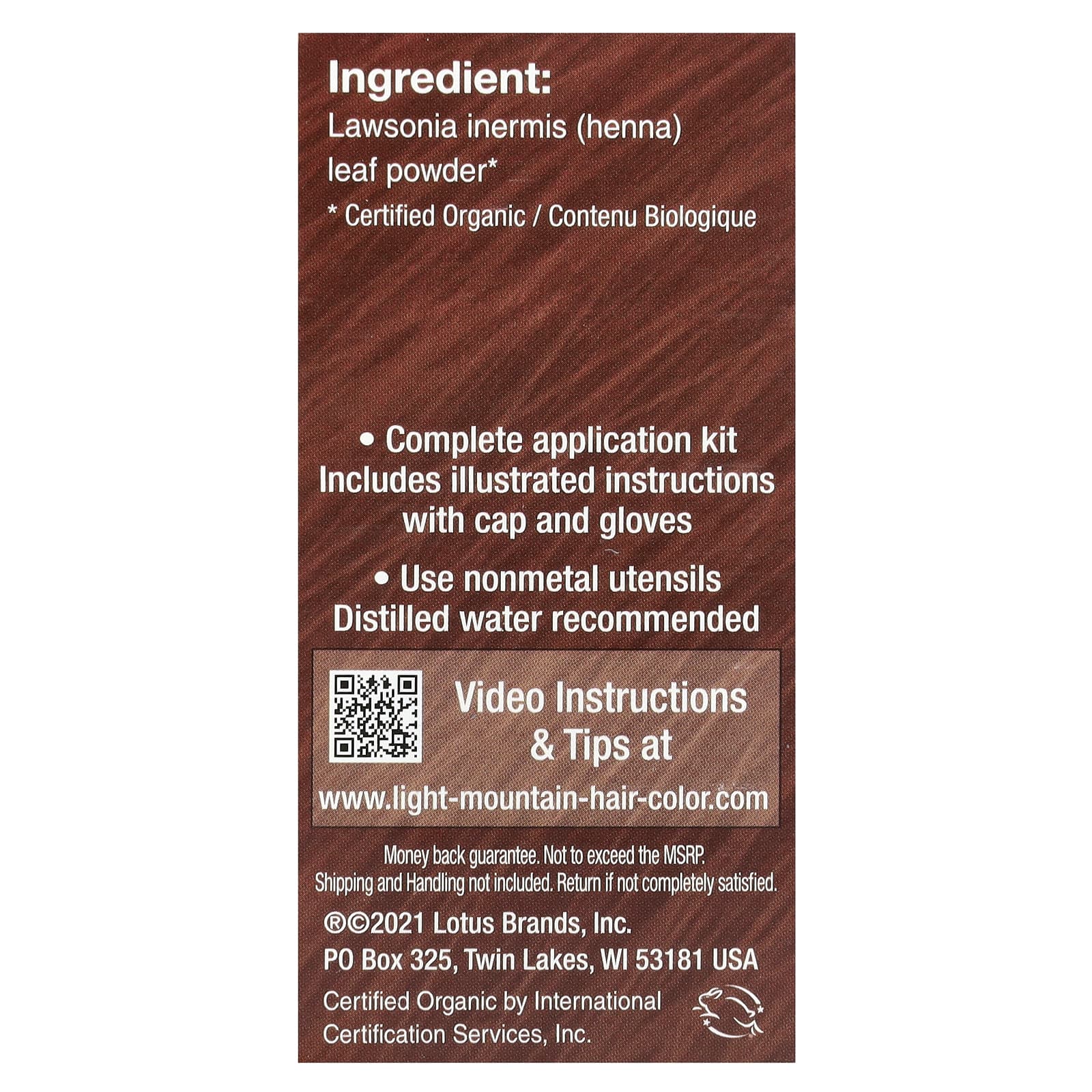 Light Mountain® Natural works with your current hair color by coating each strand with a luminous layer of color. The natural botanicals protect and nourish hair, and help restore body and shine while gently depositing color. Our formulas use a finer mesh powder. The prepared hair color will have a creamier consistency allowing for smoother application, easier rinsing, and better color release.