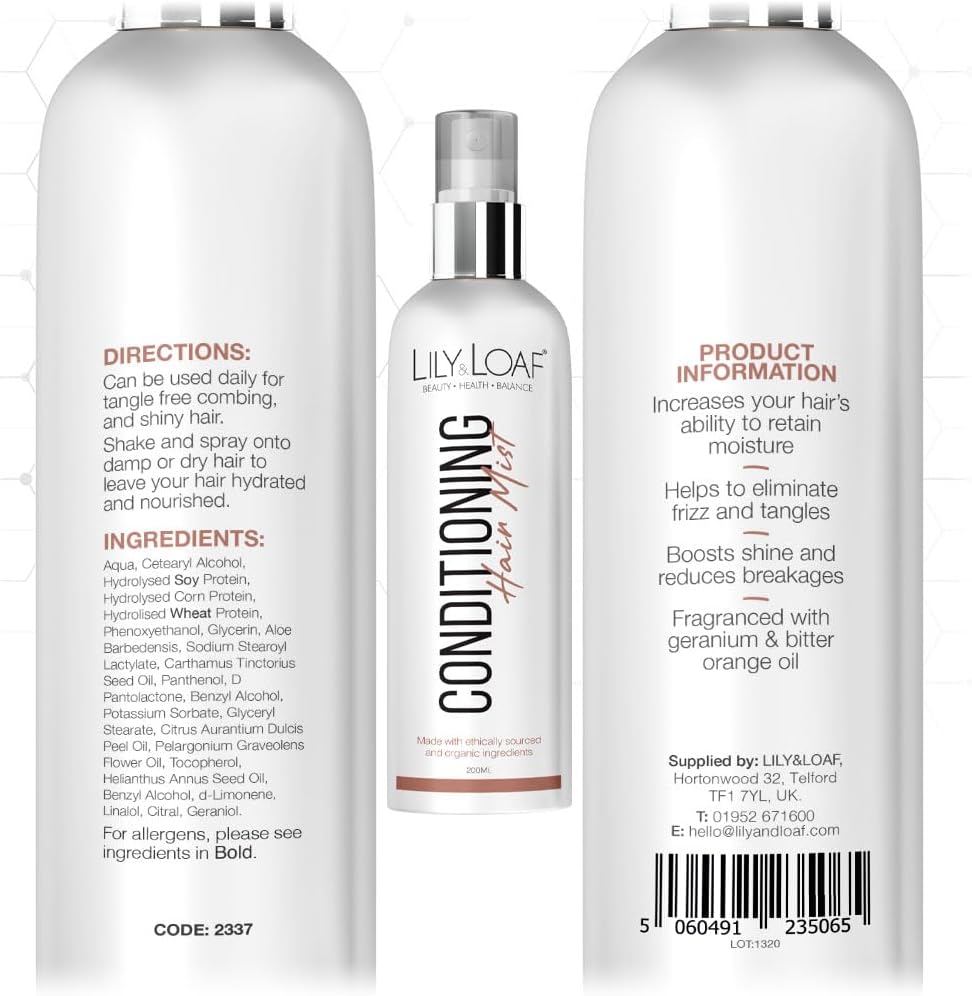 Lily & Loaf Conditioning Hair Mist – Leave-In Hydrating Spray For All Hair Types – Vegan, Lightweight & Nourishing – Smooths, Softens & Adds Shine – 200Ml