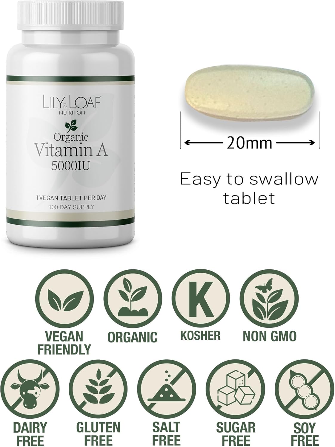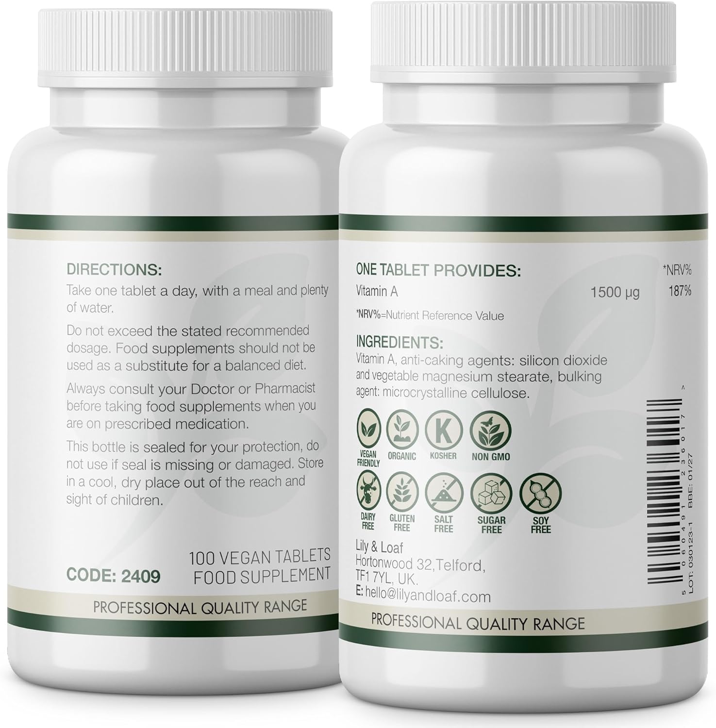 Lily & Loaf Vitamin A Supplement – Supports Healthy Vision, Immune Function, Skin Health & Cell Growth – Easy-To-Take Capsules – Daily Recommended Dose – 60 Capsules