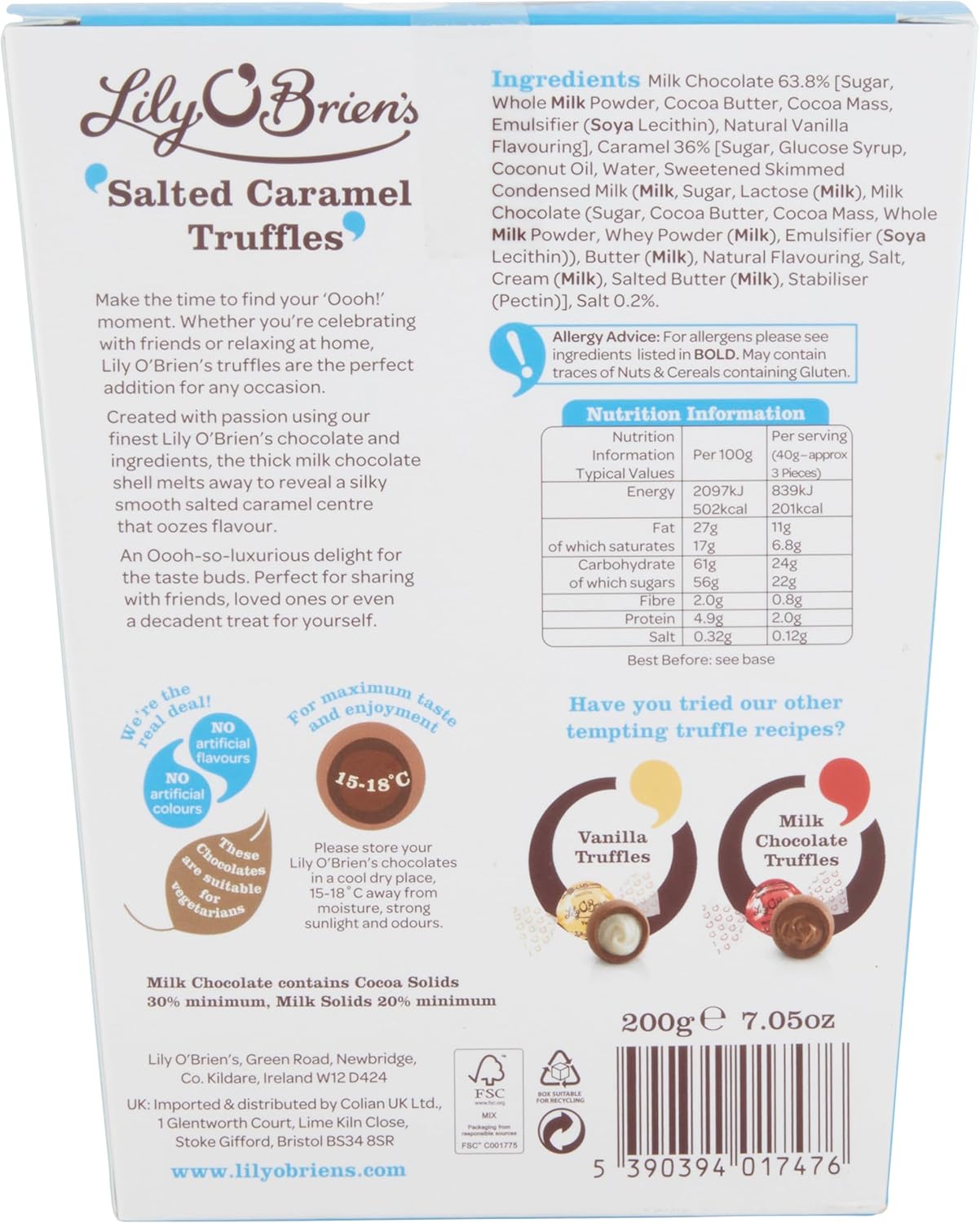 Lily O'Brien'S Milk Chocolate Truffles - Thick Milk Chocolate Shell That Gives Way To A Luxuriously Smooth Centre - Share, Gift Or A Treat. Birthday, Thank You, Christmas