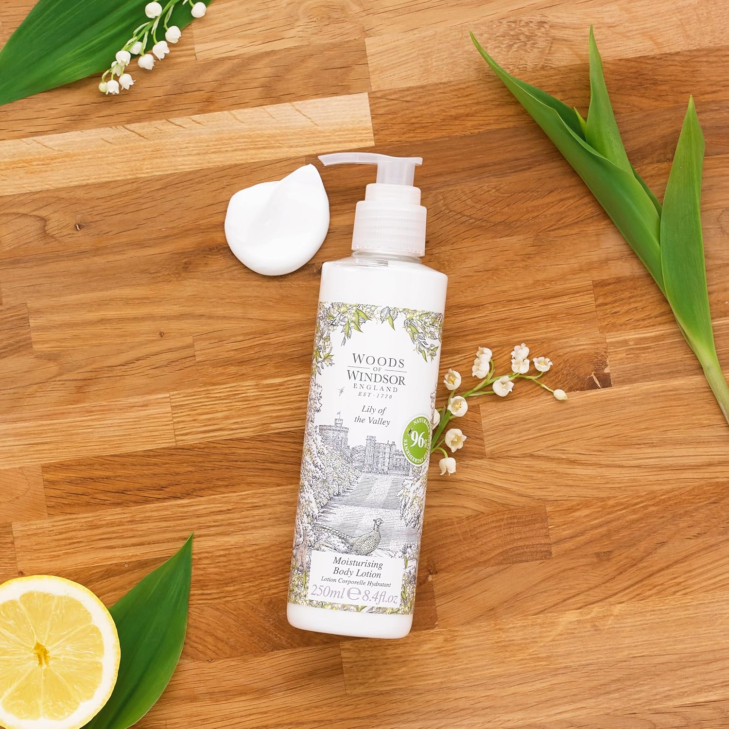 About this item LILY OF THE VALLEY FRAGRANCE: Immerse yourself in the refreshing scent of Woods of Windsor Body Lotion, featuring the delicate notes of geranium and citrus combined with the enchanting Lily of the Valley scent. It offers a rejuvenating floral aroma that uplifts your senses. FAST ABSORBING FORMULA: This body lotion is designed to absorb quickly into the skin, providing instant hydration without leaving a greasy residue, making it ideal for daily use. DEEP MOISTURISATION: Enriched with nourishing ingredients, the lotion helps soften and moisturize your skin, leaving it feeling smooth, supple, and revitalized with each application. SUITABLE FOR ALL SKIN TYPES: Gentle yet effective, this floral body moisturizer is suitable for all skin types, ensuring everyone can enjoy its hydrating benefits and luxurious fragrance. CONVENIENT SIZE: Packaged in a 250ml bottle, it's convenient for daily use and can be easily stored in your bathroom or bedside table for regular pampering sessions. See more product details,LILY OF THE VALLEY FRAGRANCE: Immerse yourself in the refreshing scent of Woods of Windsor Body Lotion, featuring the delicate notes of geranium and citrus combined with the enchanting Lily of the Valley scent. It offers a rejuvenating floral aroma that uplifts your senses,FAST ABSORBING FORMULA: This body lotion is designed to absorb quickly into the skin, providing instant hydration without leaving a greasy residue, making it ideal for daily use,DEEP MOISTURISATION: Enriched with nourishing ingredients, the lotion helps soften and moisturize your skin, leaving it feeling smooth, supple, and revitalized with each application,SUITABLE FOR ALL SKIN TYPES: Gentle yet effective, this floral body moisturizer is suitable for all skin types, ensuring everyone can enjoy its hydrating benefits and luxurious fragrance,CONVENIENT SIZE: Packaged in a 250ml bottle, it's convenient for daily use and can be easily stored in your bathroom or bedside table for regular pampering sessions