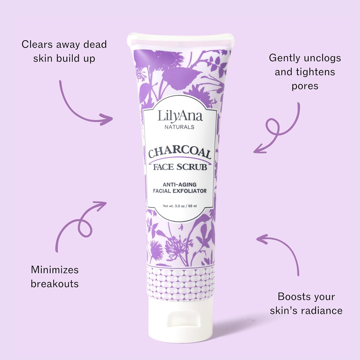 Lilyana Naturals Charcoal Face Scrub - Facial Exfoliator - Microdermabrasion Scrub - Facial Skin Care Products For Women And Men - Lavender And Tea Tree Oil - 3Oz