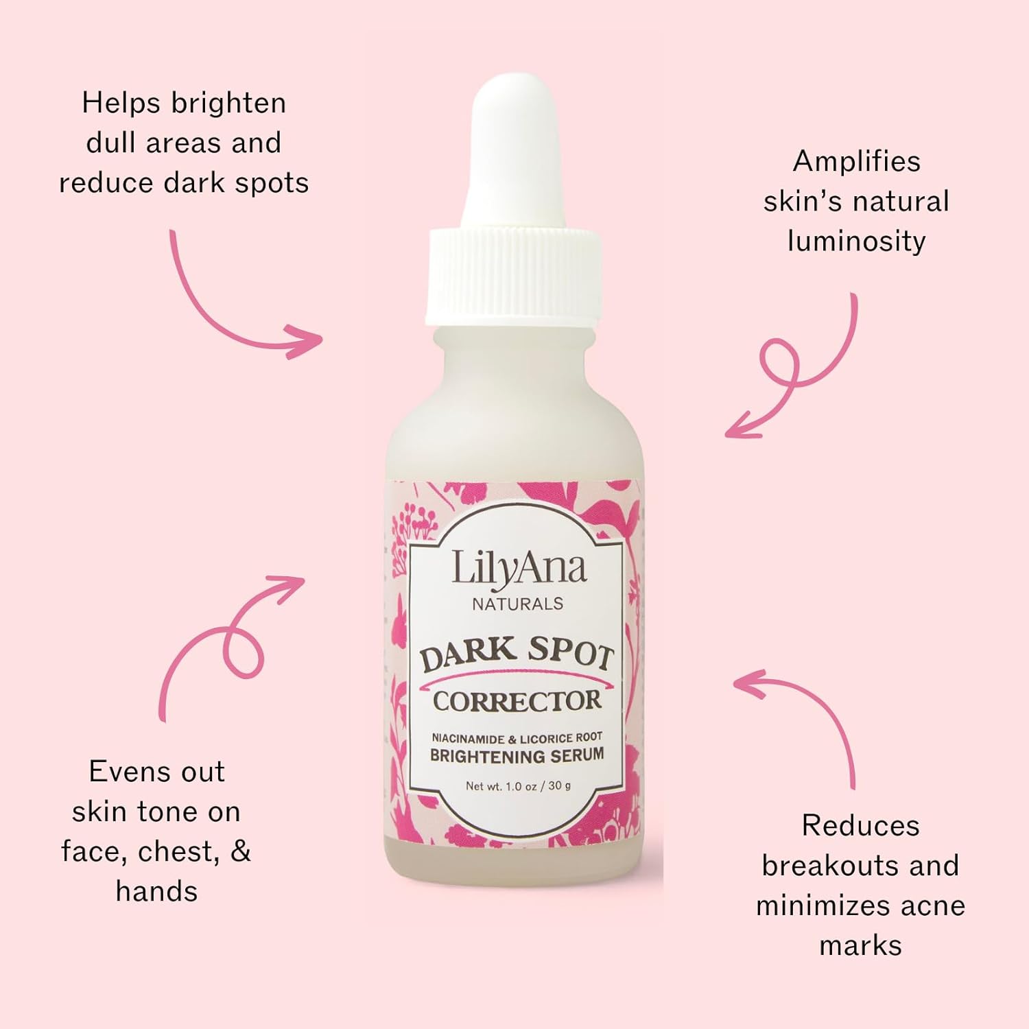 LilyAna Naturals Dark Spot Corrector - Dark Spot Remover for Face - Brightening Face Serum for Women and Men - Niacinamide and Licorice Root -1oz