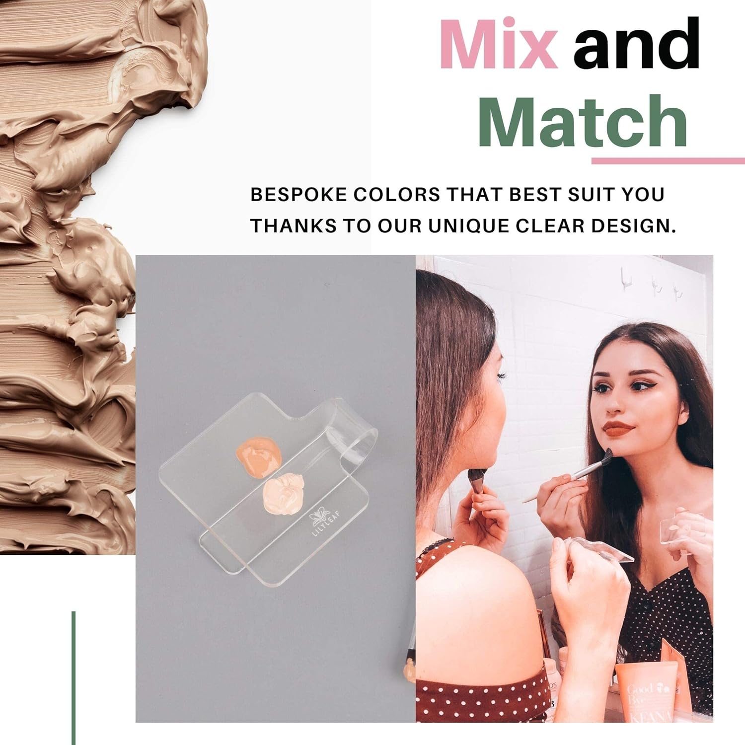 LilyLeaf Handheld Makeup Mixing Palette - Transparent Hand Tray for Mixing Foundation - Clear Acrylic Blending Plate For Makeup Lovers and Professionals With Cute Storage Bag (M)
