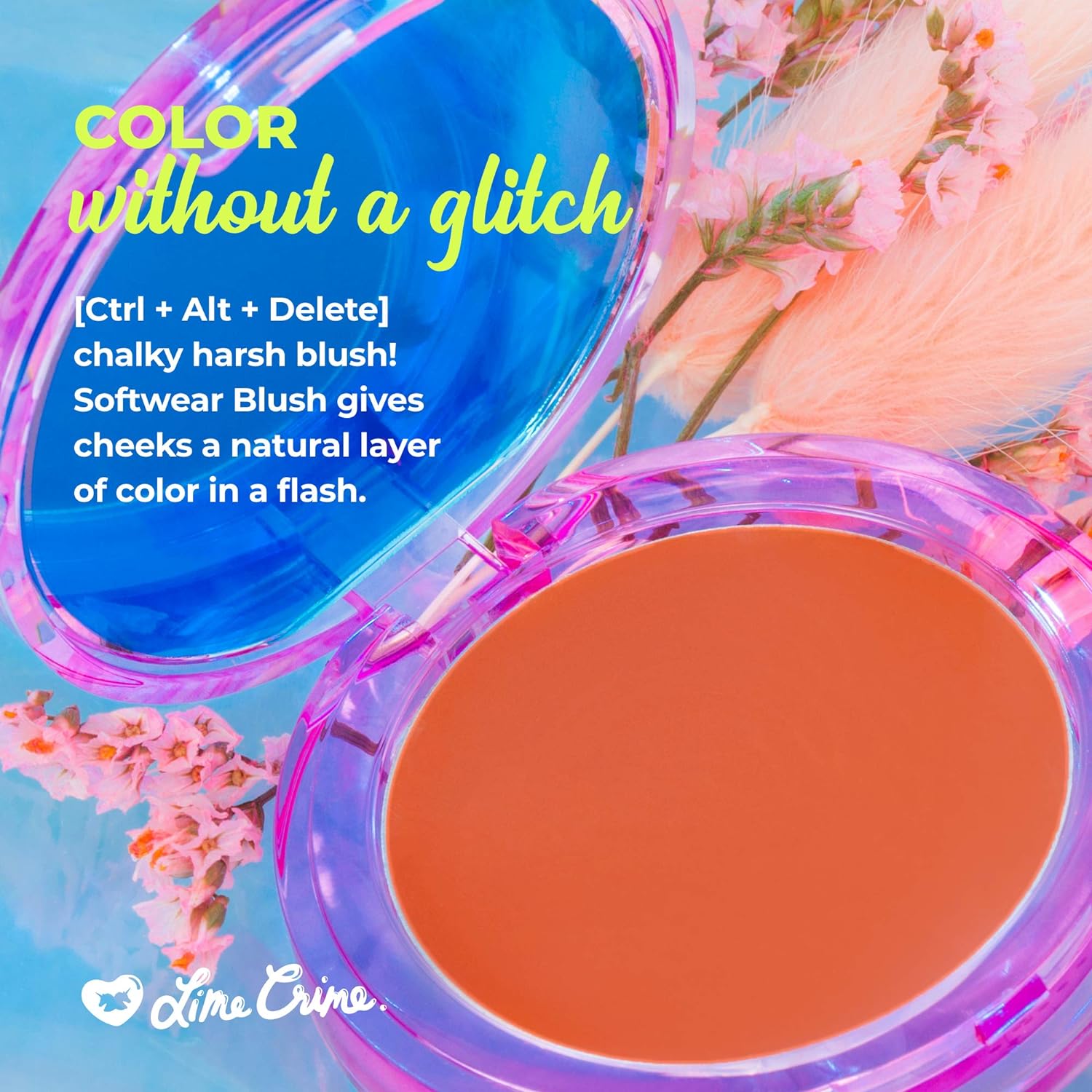 Lime Crime Softwear Blush, Digital Peach - Blendable, Buildable Warm Pinky Peach Color - Cream-to-Powder Formula - Weightless Soft Matte Finish - Vegan, Cruelty Free - 4.4 grams