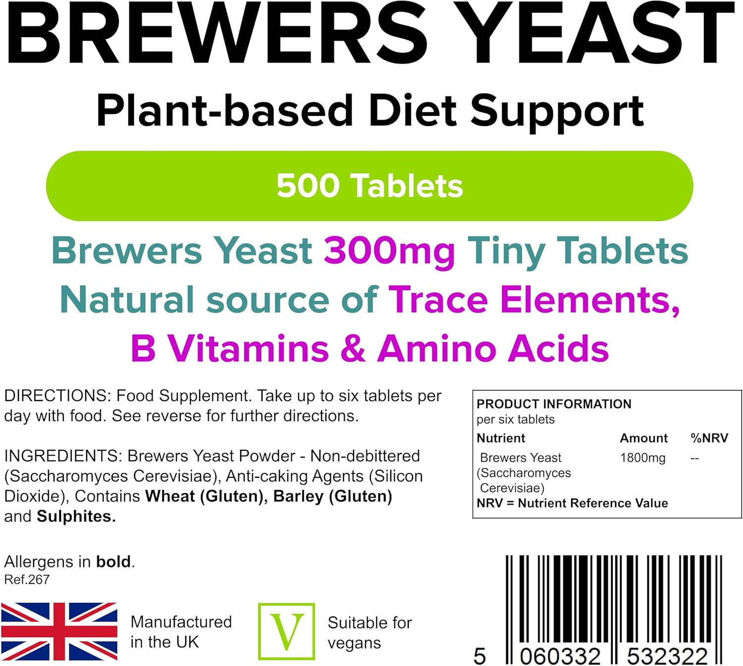 Lindens - Brewers Yeast - 1800Mg Daily Intake - 500 Vegan Tablets - Uk Made - Natural Vitamins & Micronutrients And Non-Debittered For Maximum Nutrition | B Vitamins, Amino Acids, Minerals