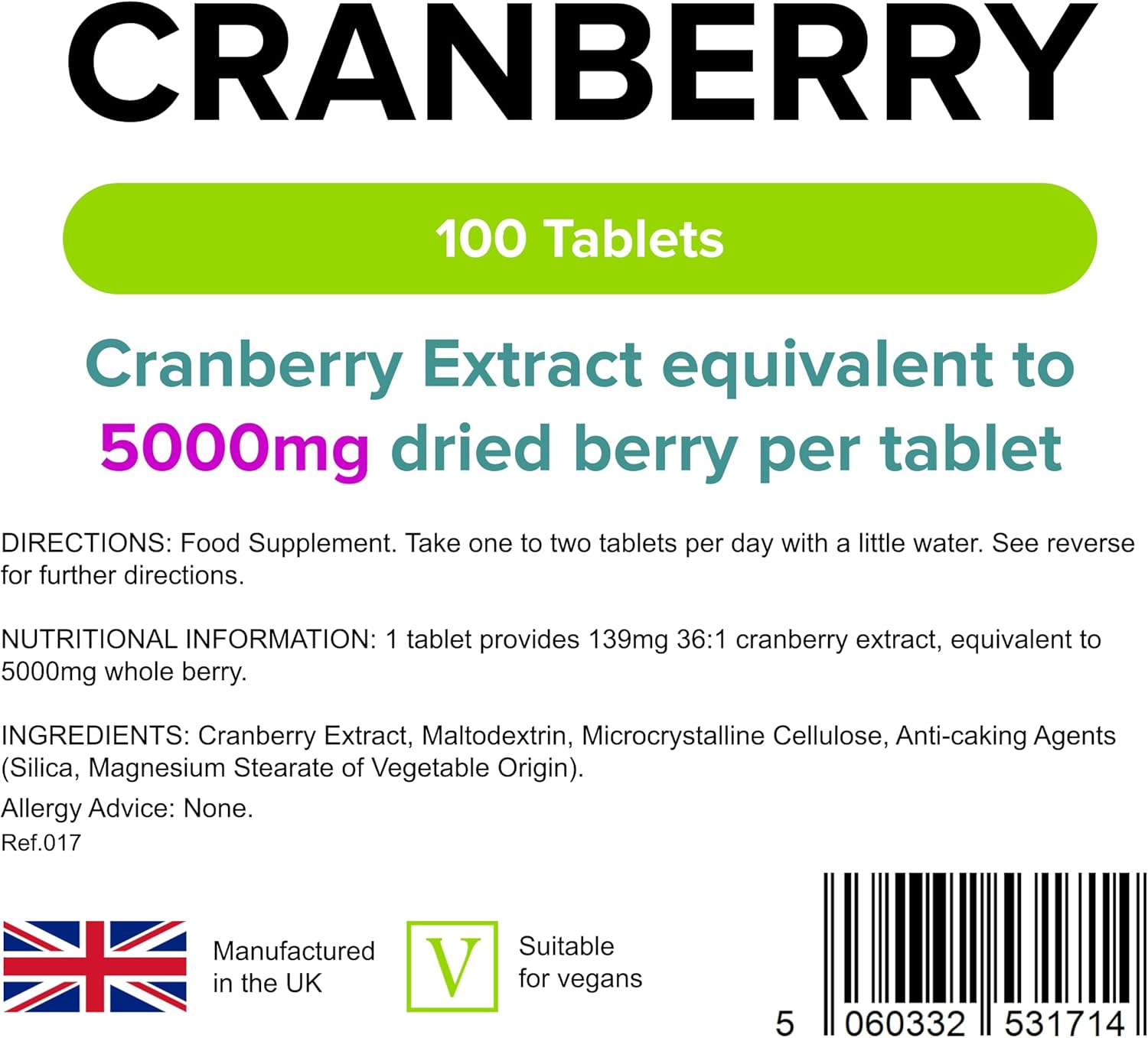 Lindens - Cranberry Juice 5000Mg - 100 Tablets - Uk Made - Rich In Polyphenols And Antioxidants - Urinary Health Support, Popular With Women - Letterbox Friendly