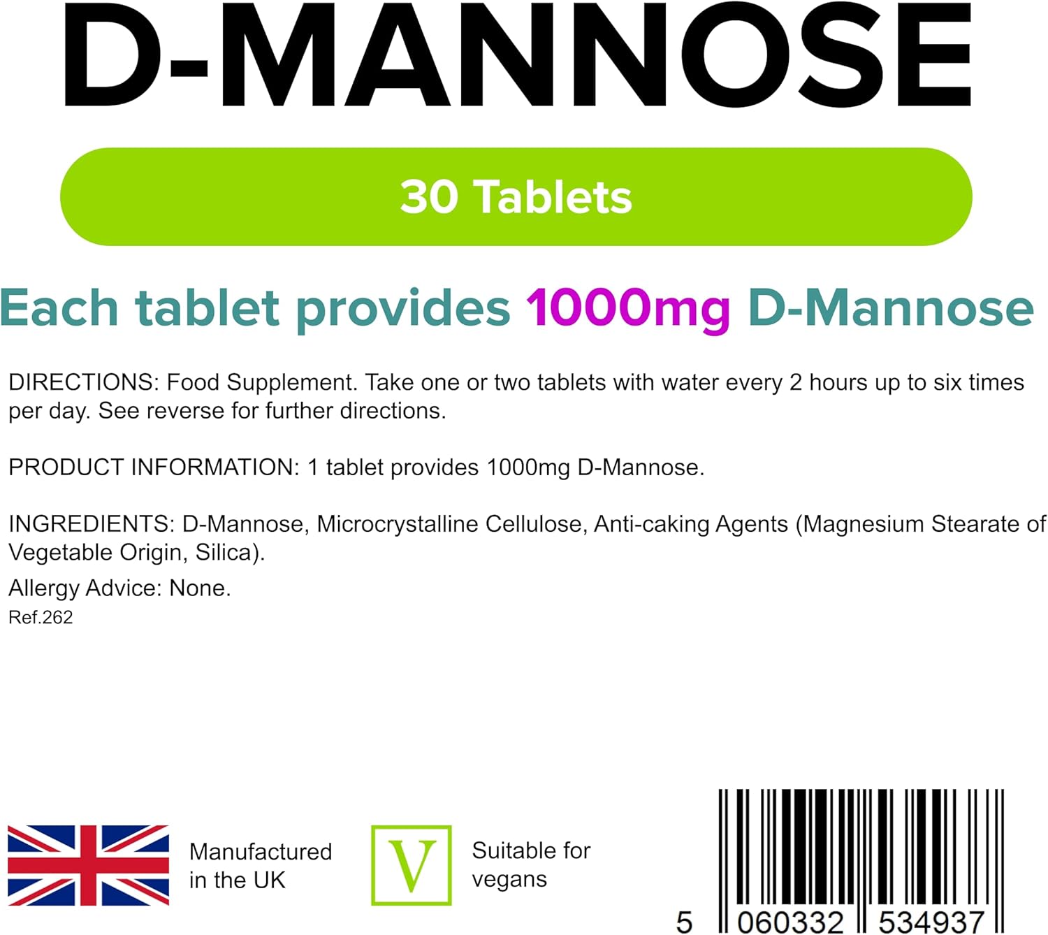 Lindens - D-Mannose 1000Mg - 30 Tablets - Uk Made - Provides 1000Mg D Mannose Per Tablet - Contributes To Urinary Health - Substitute For Cranberry - Gmp - Letterbox Friendly, Vegan