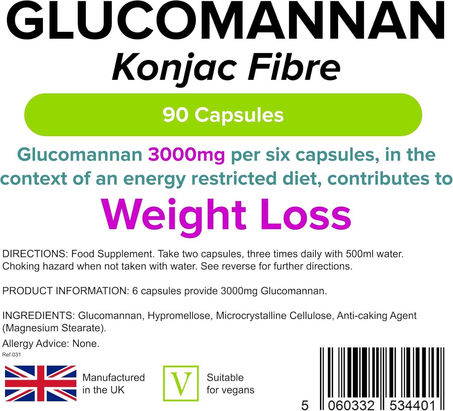 Lindens Glucomannan (Konjac Fibre) Capsules - 3,000Mg Per Serving - 90 Pack - Weight Loss Aid - Contributes Towards The Reduction Of Appetite - Weight Loss Supplement - Letterbox Friendly