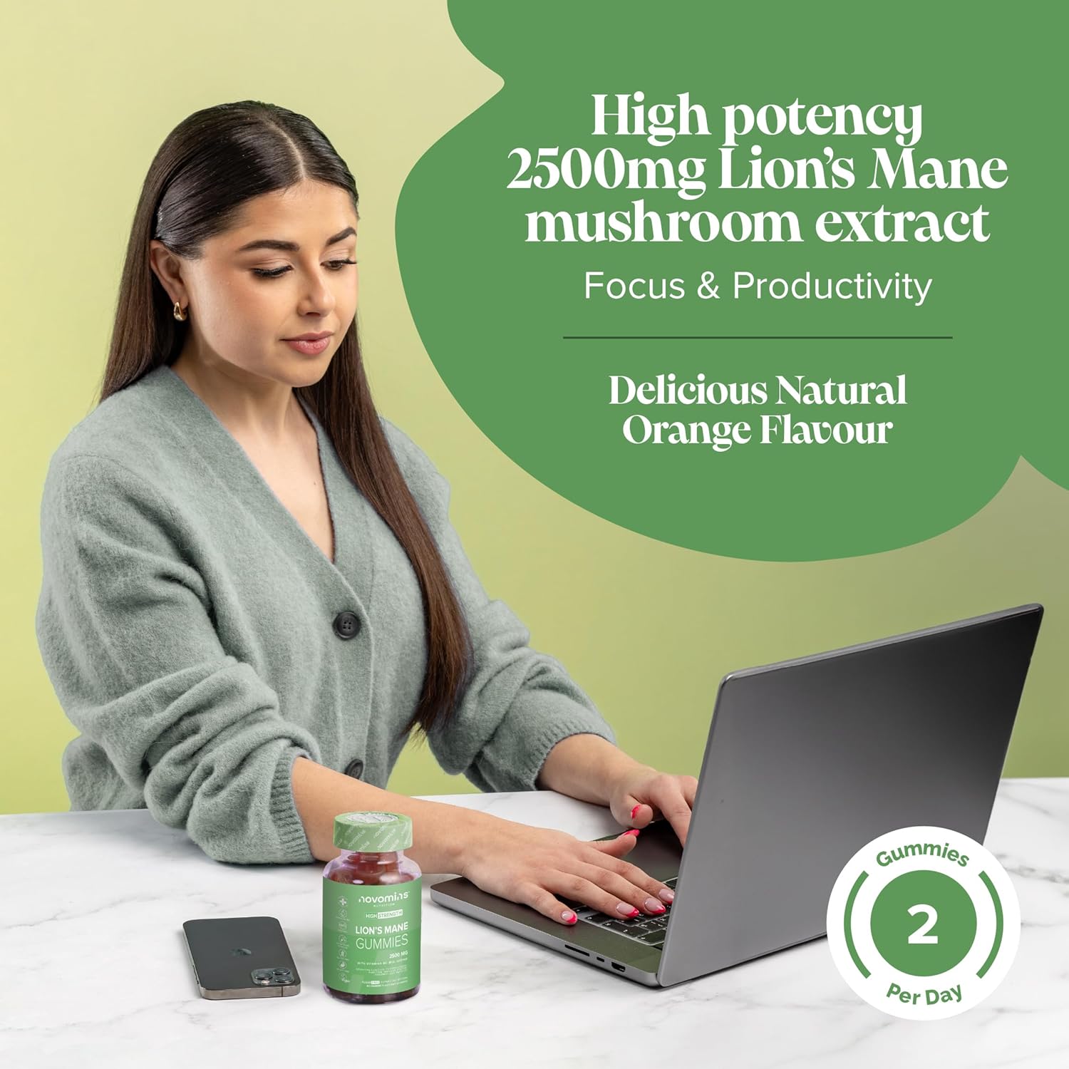 Lions Mane Supplement Gummies - Added Vitamin B6, B12 For Mental Performance - High-Strength Alternative To Lions Mane Powder - Lion'S Mane Mushroom Gummies - Lions Mane Gummies For Adults - Novomins