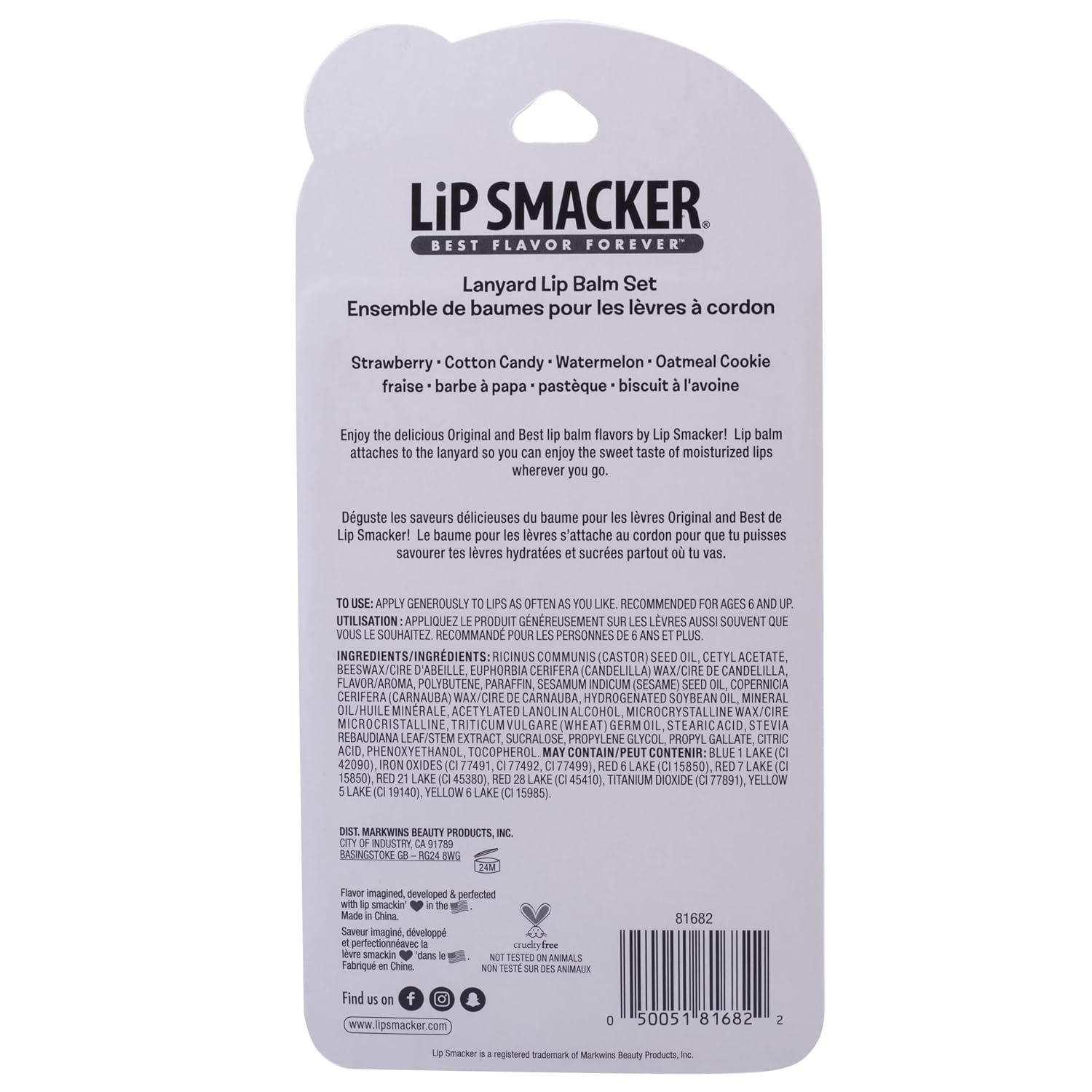 Lip Smacker Flavored Lip Balm & Pink Lanyard Set | Strawberry, Cotton Candy, Watermelon, Oatmeal Cookie Flavors | For Kids | Stocking Stuffer | Christmas Gift | Set Of 4