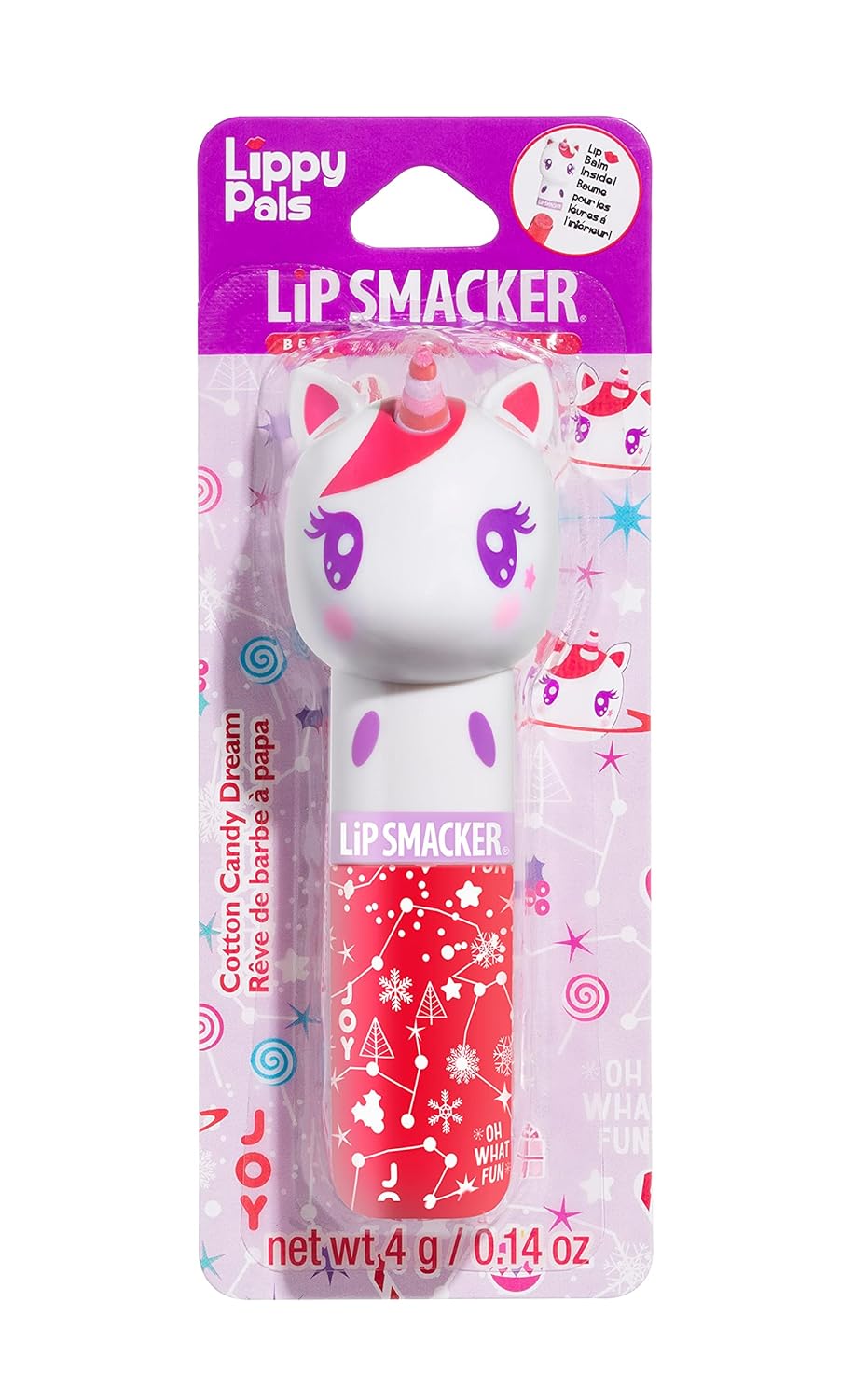 Lip Smacker Lippy Pals Unicorn Holiday, Flavored Moisturizing & Smoothing Soft Shine Lip Balm, Hydrating & Protecting Fun Tasty Flavors, Cruelty-Free & Vegan - Cotton Candy Dream