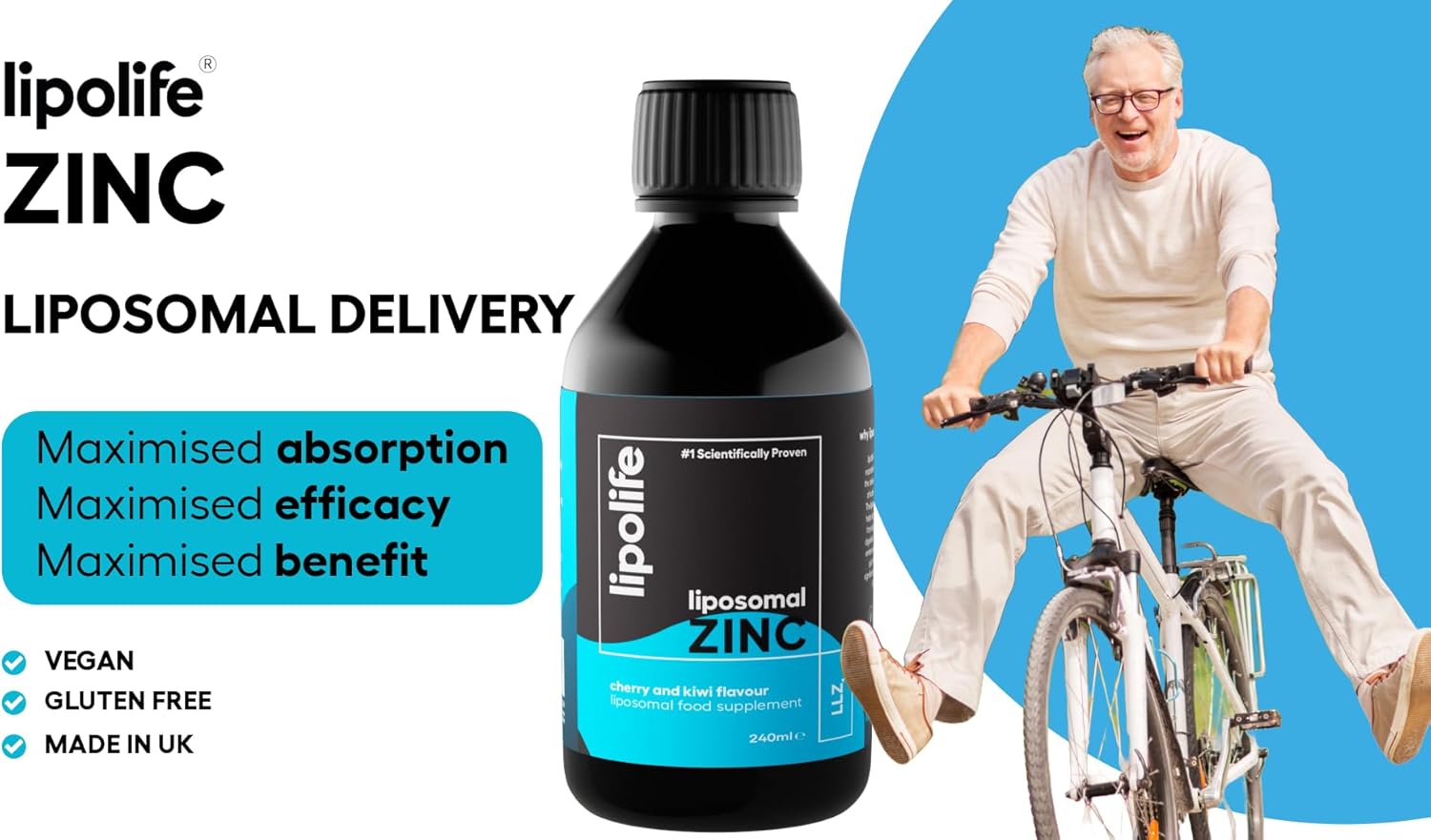 Lipolife Liposomal Liquid Zinc Supplement For Optimal Immune Support Llz1. Delicious Cherry And Kiwi Flavour, Vegan, Gluten Free, Sugar Free. 48 Servings