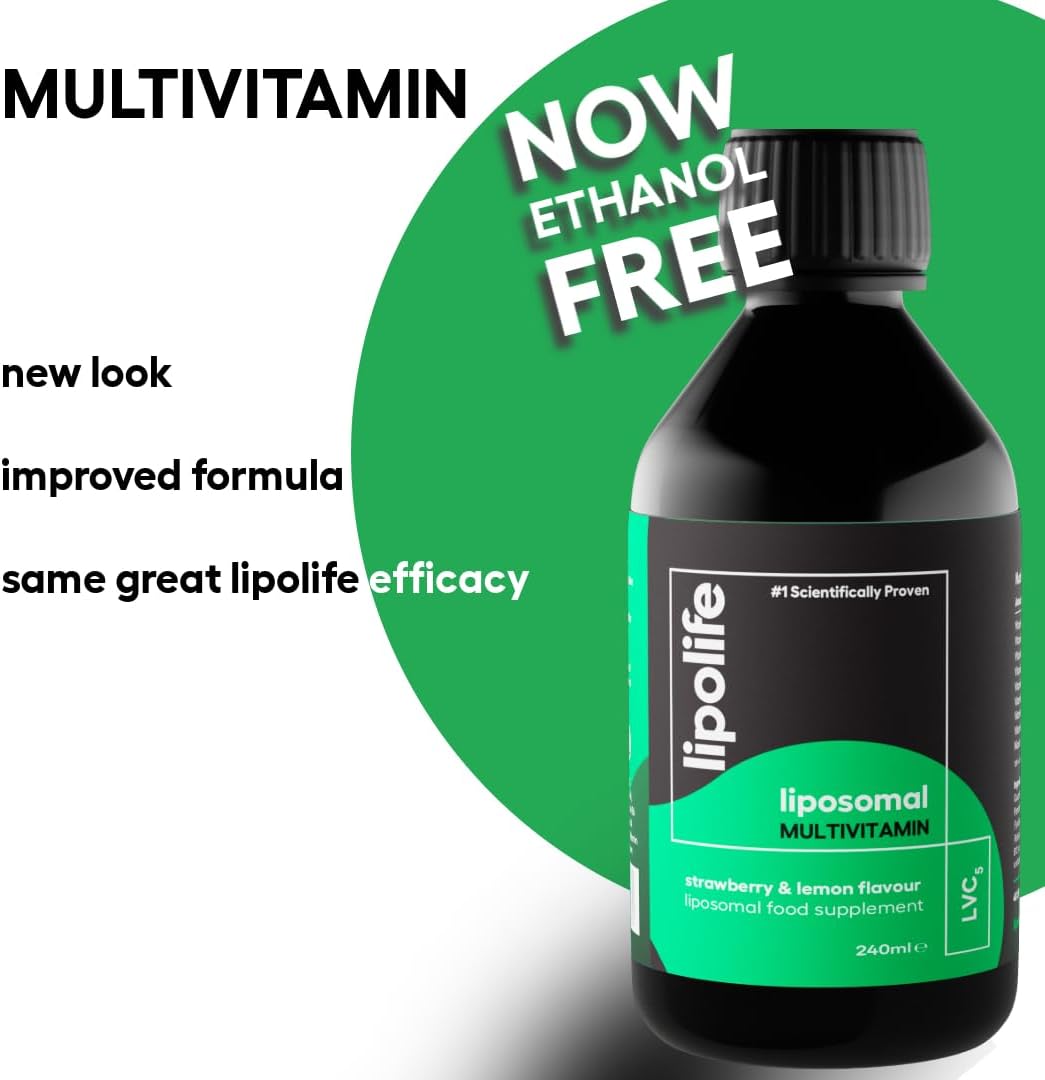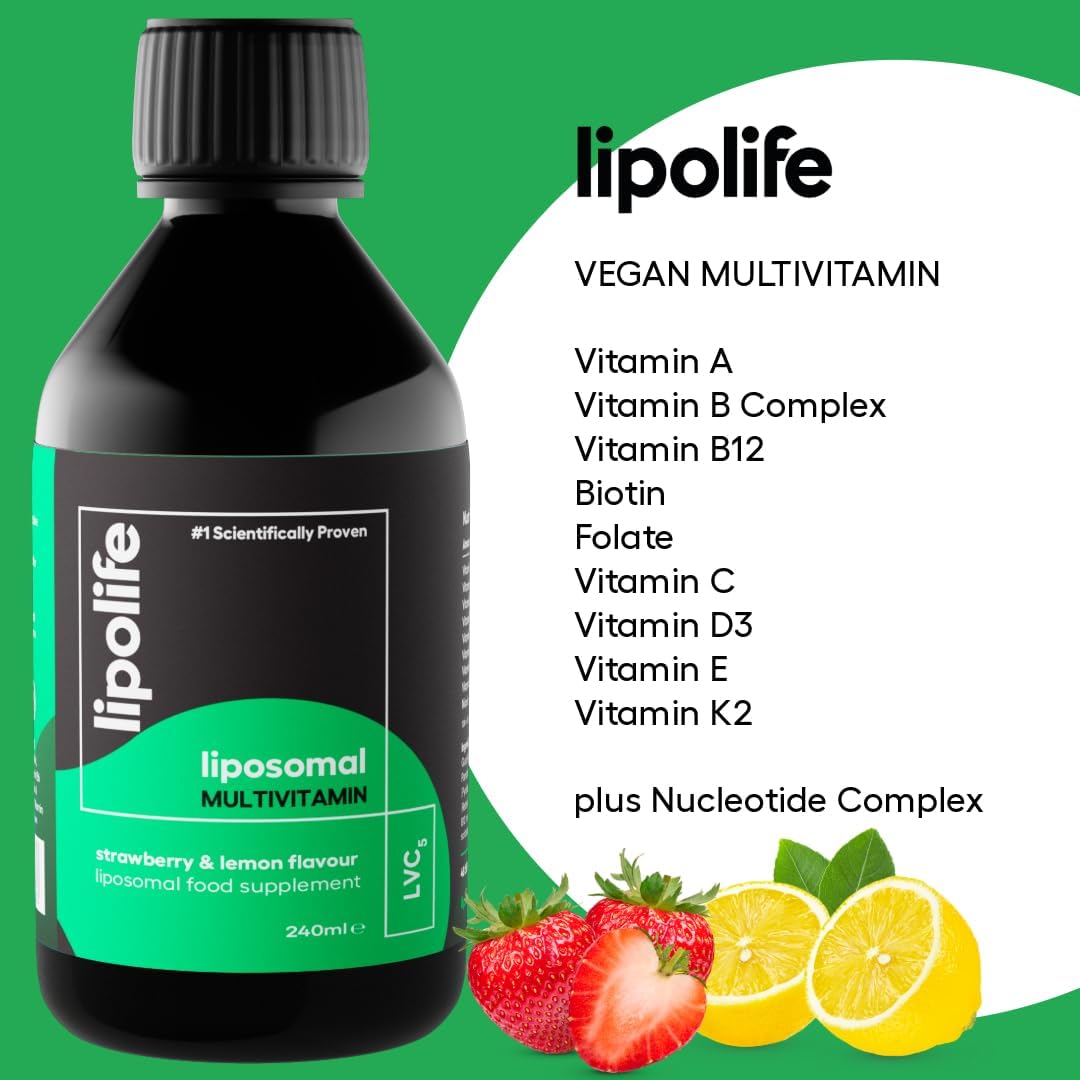 Lipolife Liposomal Vegan Multivitamin | Higher Absorption, Scientifically Proven | Advanced Formula. Strawberry And Lemon Flavour. 240Ml. For Your Family'S Immune Health