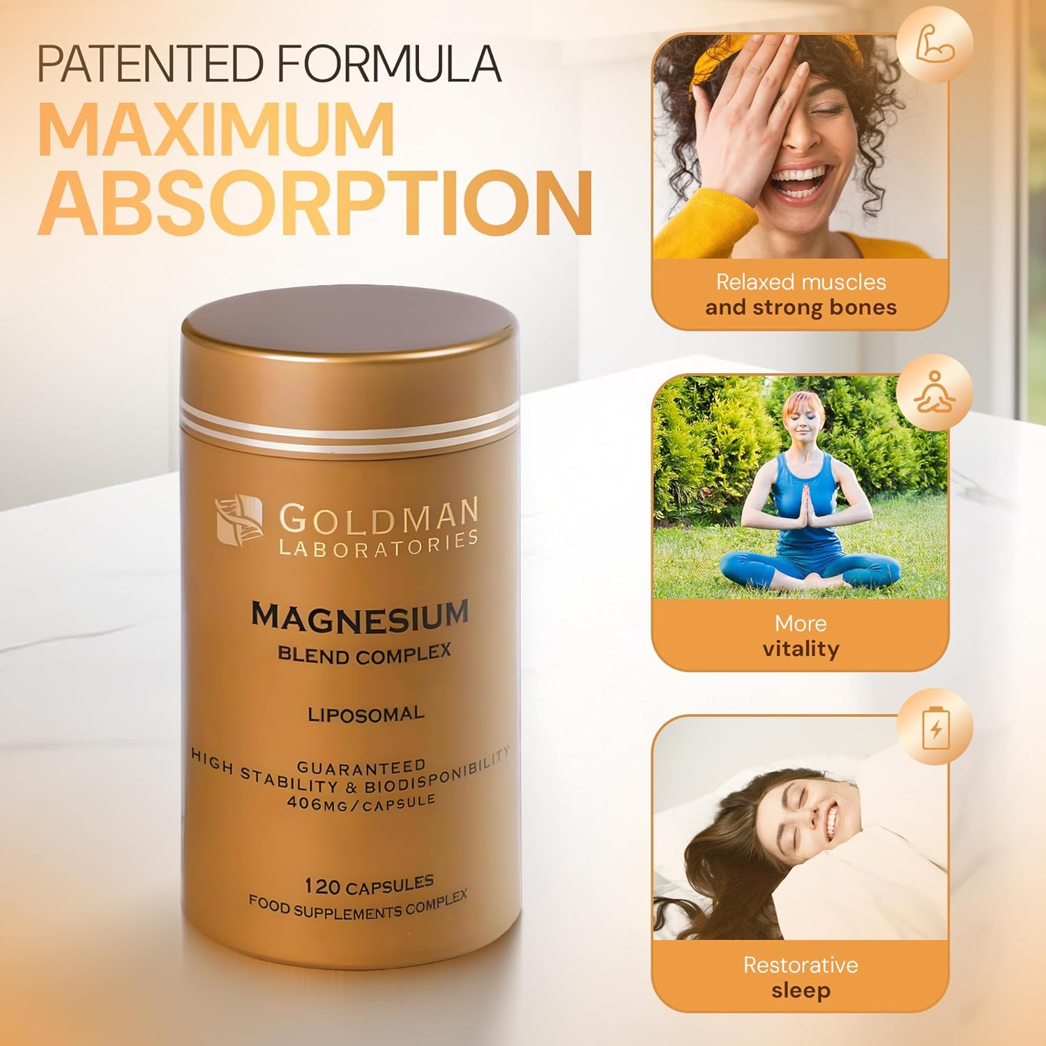 Liposomal Magnesium Blend Complex - Goldman Laboratories - Patented Complex- Maximum Bioavailability - Immunity, Fatigue, Bones, Teeth, Muscles – 120 Capsules – Slow Release…