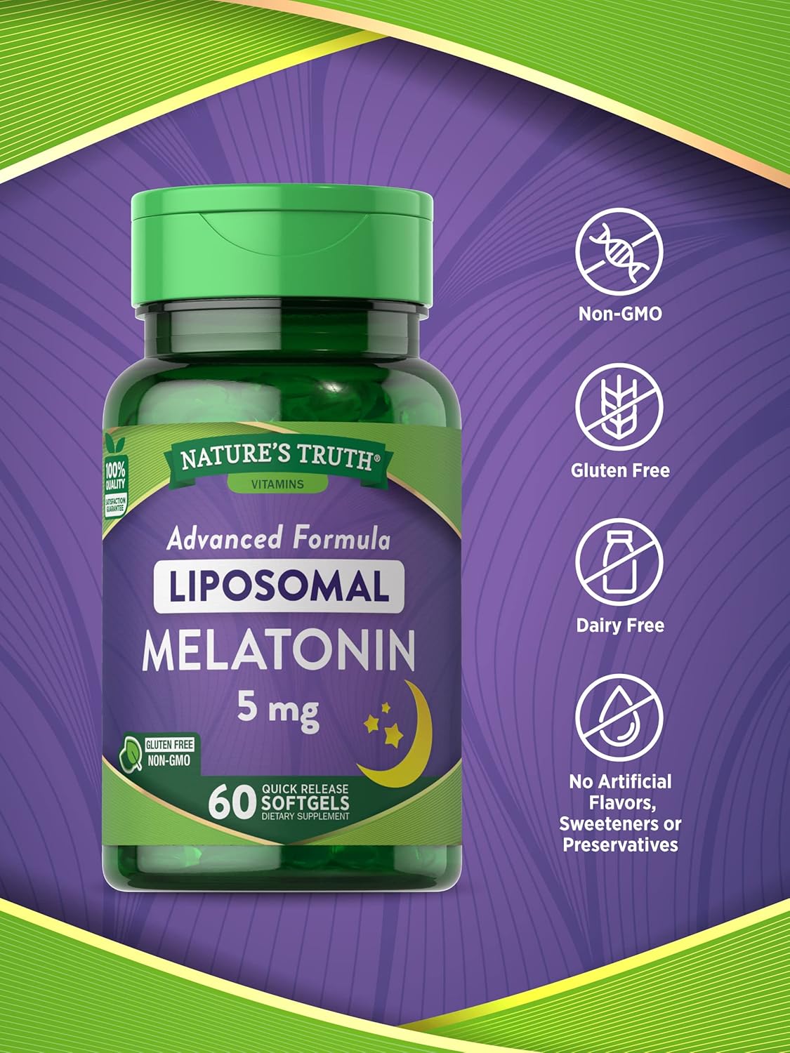 What Is Melatonin Melatonin Is Naturally Produced By The Body And Works In Harmony With Your Natural Cycle. The Body’S Ability To Produce This Naturally Occurring Hormone May Begin To Decline With Age, So You Can Support It With A Trusted Melatonin Supplement. Nature’S Truth Melatonin Softgels Each Quick Release Softgel Provides 5 Mg Of Melatonin That You Can Take 30 Minutes Before Bedtime. Liposomal Softgels Deliver Nutrients In A Packaged Liposome Which Protects The Nutrients From Degradation Within The Body Like Harsh Stomach Acids; Thus, Allowing For An Advanced Absorption Within The Body. Nature’S Truth: Where Wellness Begins Our Mission At Nature’S Truth Is To Meet Your Wellness Needs With Products That Go Above And Beyond. Nature’S Truth Provides Supplements In Various Delivery Forms, Such As Capsules, Softgels, Chewables, Tablets, Powders, Liquids, And Gummies To Suit Every Preference. Our Melatonin Is Non-Gmo And Free Of Gluten, Wheat, Yeast, Milk, Lactose, Artificial Flavor, Artificial Sweetener, And Preservatives