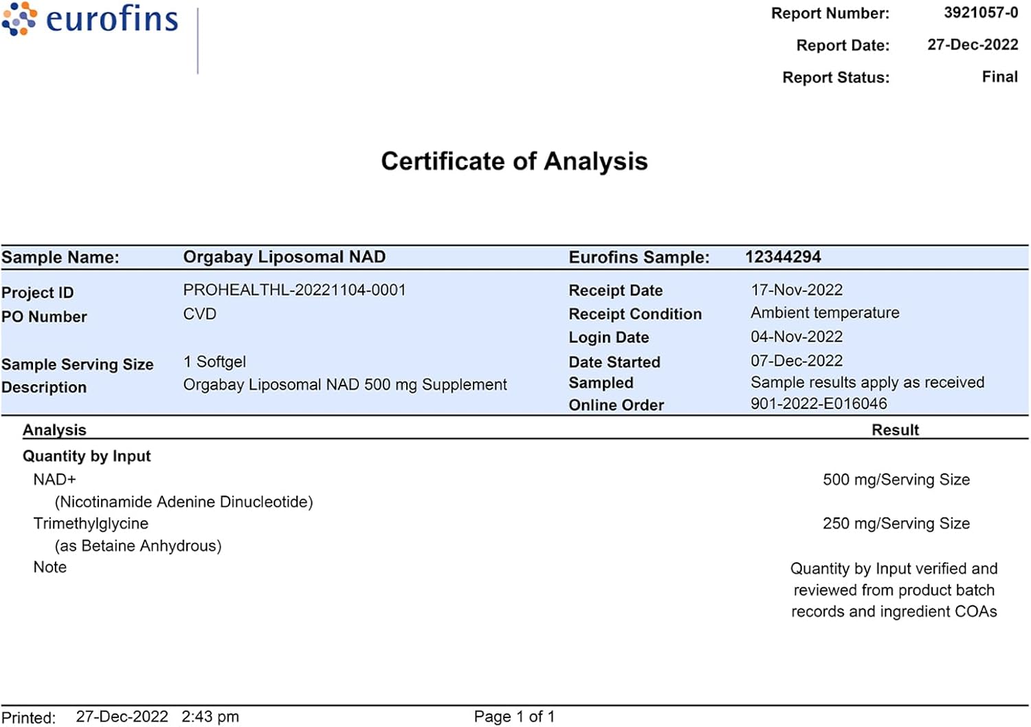 High Dose, Powerful Formulas - We offer you 500 mg NAD+ plus 250 mg TMG per softgel while most NAD+ supplements just have low doses of 150 mg, 200 mg, 300 mg NAD+. Trimethylglycine (TMG) has been proved that it is a key factor in cell NAD+ production, helping maintain a healthy methylation cycle. We add 250 mg TMG to our liposomal NAD+ to ensure your good health