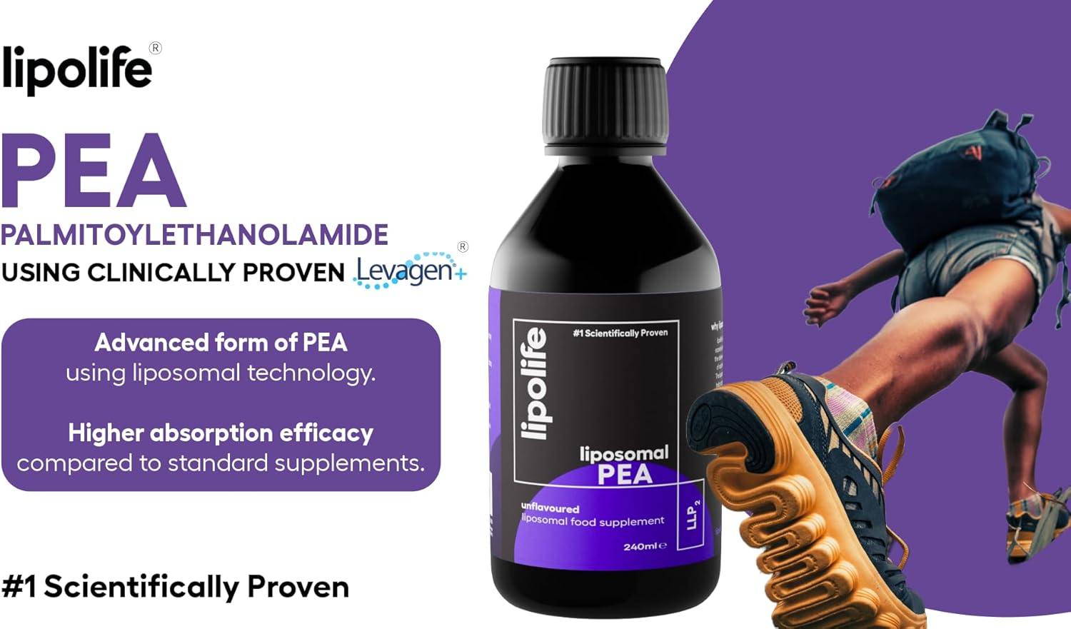 Liposomal Pea Palmitoylethanolamide Levagen+ Lipolife Llp2 | High Strength | Enhanced Bioavailability | 48 Days Supply | Cognitive Health, Muscle Recovery | Helps Reduce Joint Pain And Inflammation