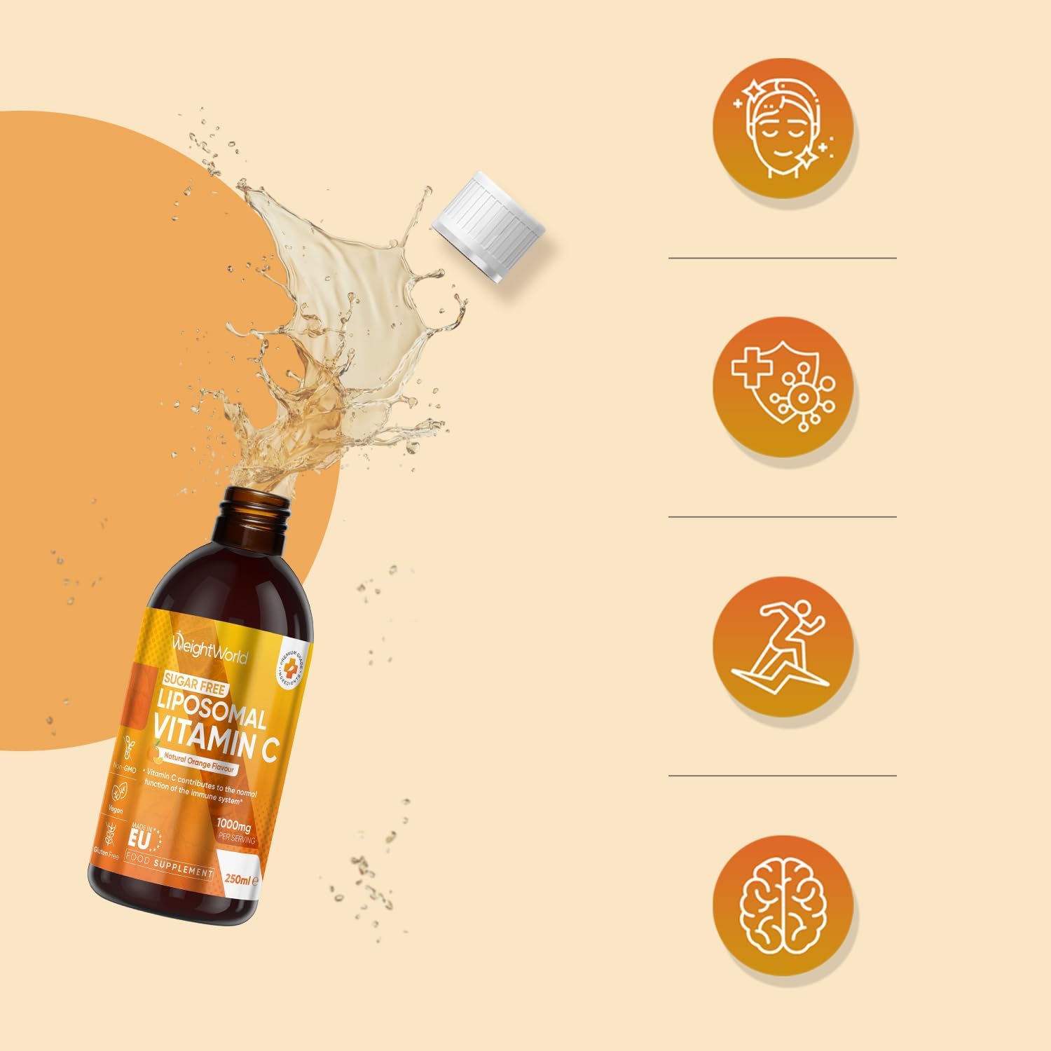 Liposomal Vitamin C - 250Ml - Natural Orange Flavour - Sugar-Free & Gluten-Free - 1000Mg Per Serving - Easy-To-Absorb Sodium-L-Ascorbate Form - Non-Gmo & Vegan-Friendly Vit C Supplements