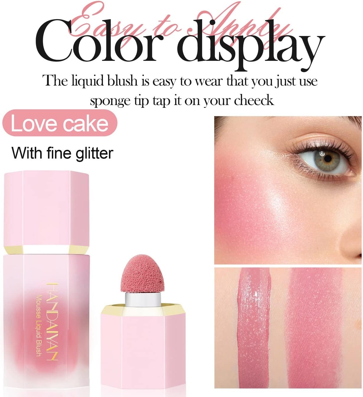 Liquid Blush Face Blusher Rouge Natural Smooth Blusher Pigment Long Lasting Creamy Soft Cheek Multi-Purpose Stick Makeup With Cushion Cosmetics Liquid Facial Blush(Love Cake)