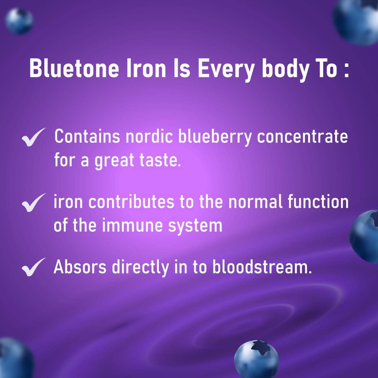 Liquid Iron Supplement - Bluetone, Suitable For Vegans And Vegetarians, Iron Supplement, Natural Iron In Mixed Fruit Flavor - 500 Ml, 15 Ml Dose Per Day, 33 Doses