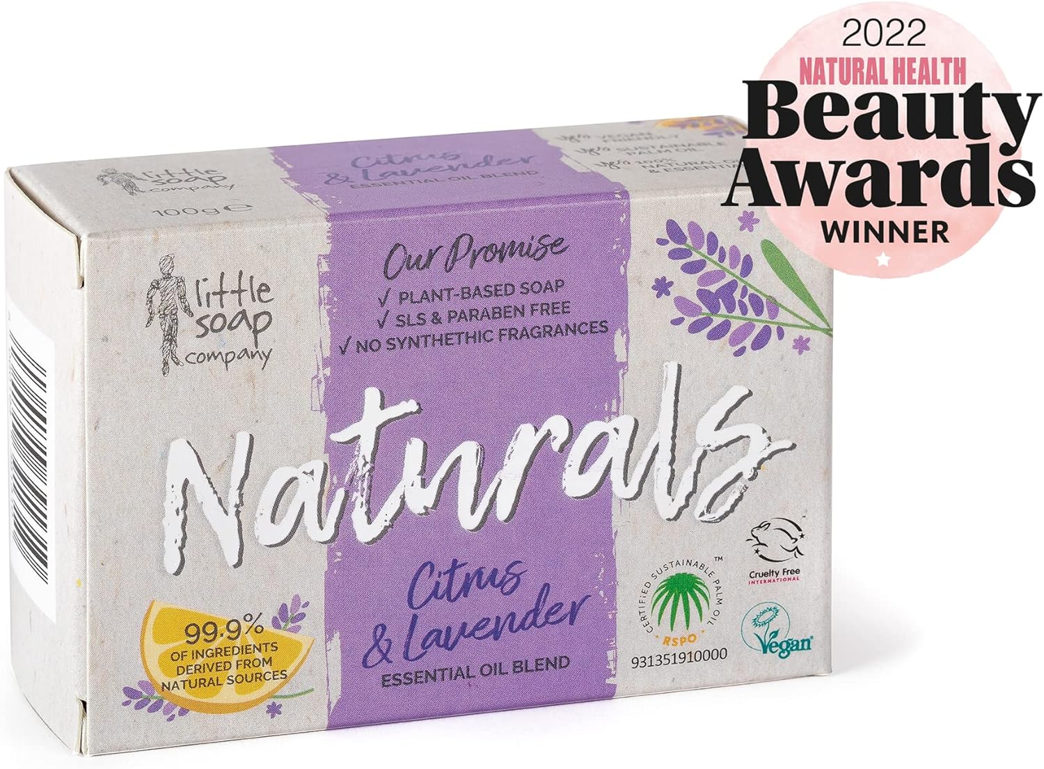 Little Soap Company Naturals Range - Bar Soap | Vegan, Cruelty Free, No Sls Or Parabens, Refreshing Cleansing Soap Bars, Natural Eco Friendly Body & Hand Soap, 100G (Citrus & Lavender)