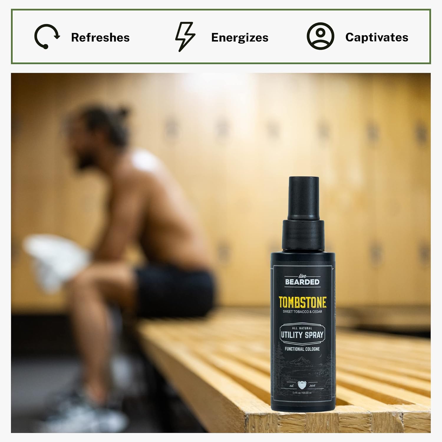 About this item Canyon: An aromatic slice of the great outdoors, our Canyon fragrance is made with juniper, cypress, and fir needles. Itās a trip to your favorite camping spot, all in a 3.4 oz bottle of sprayable goodness. All purpose cologne: Live Bearded Utility Spray is designed to help you feel incredible, all day every day. Spray it on your body, clothes, or gym bag, or use it in the truck, around the house, and anywhere else that needs freshening up. All-natural ingredients: We didnāt cheap out by adding synthetic preservatives or aerosols. Each bottle of Live Bearded Utility Spray is made with 100% all natural ingredients and all natural fragrances. Made in the USA: Every product we sell is handpicked, custom formulated, and designed to perfection. Our fragrance for men is made and bottled in the USA using natureās finest ingredients. Lifetime guarantee: Your satisfaction is our priority: No questions asked! We stand behind every product we sell with a lifetime guarantee. If youāre not fully satisfied, let us know and weāll exchange or refund your purchase. āŗ See more product details,Canyon: An aromatic slice of the great outdoors, our Canyon fragrance is made with juniper, cypress, and fir needles. Itās a trip to your favorite camping spot, all in a 3.4 oz bottle of sprayable goodness,All purpose cologne: Live Bearded Utility Spray is designed to help you feel incredible, all day every day. Spray it on your body, clothes, or gym bag, or use it in the truck, around the house, and anywhere else that needs freshening up,All-natural ingredients: We didnāt cheap out by adding synthetic preservatives or aerosols. Each bottle of Live Bearded Utility Spray is made with 100% all natural ingredients and all natural fragrances,Made in the USA: Every product we sell is handpicked, custom formulated, and designed to perfection. Our fragrance for men is made and bottled in the USA using natureās finest ingredients,Lifetime guarantee: Your satisfaction is our priority: No questions asked! We stand behind every product we sell with a lifetime guarantee. If youāre not fully satisfied, let us know and weāll exchange or refund your purchase