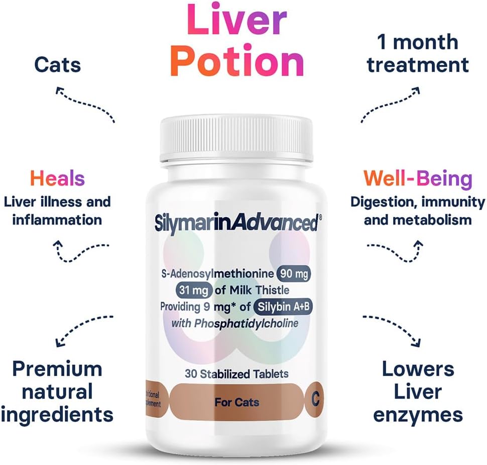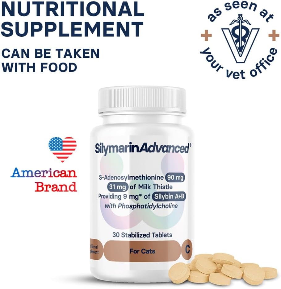 Liver Health Supplement For Cats, S-Adenosylmethionine (Same) And Silybin, Liver Tablets, Cognitive Support, 30 Tablets